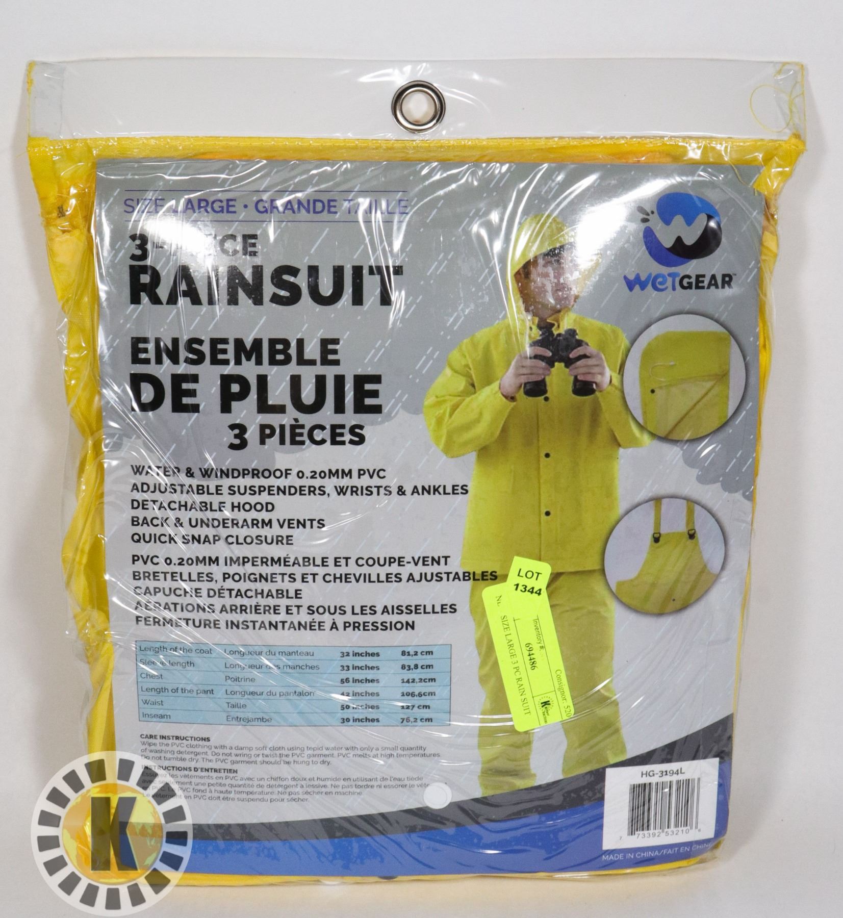 NEW SIZE LARGE 3 PC RAIN SUIT