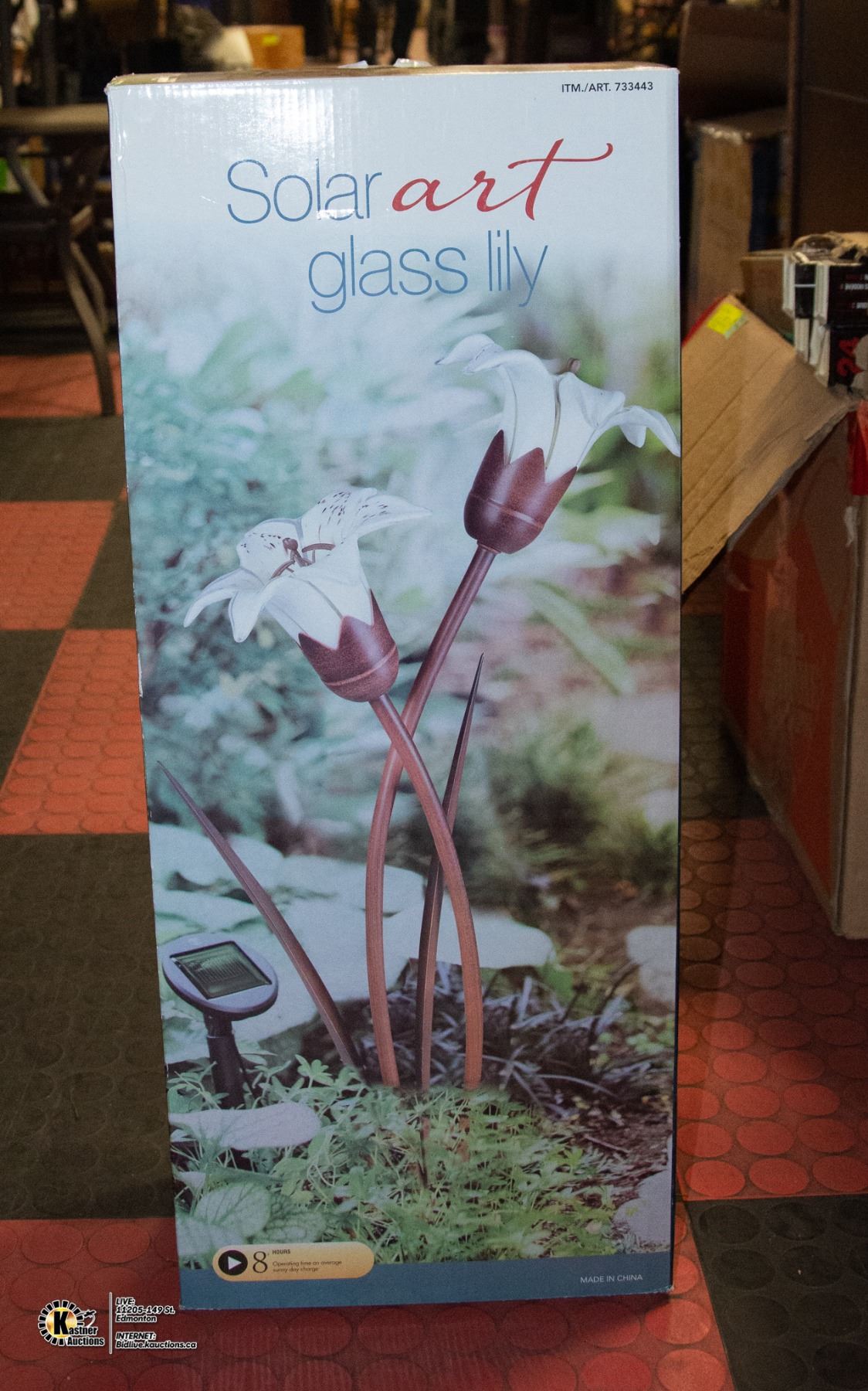 NEW SOLAR ART GLASS LILY, HAND CRAFTED GLASS