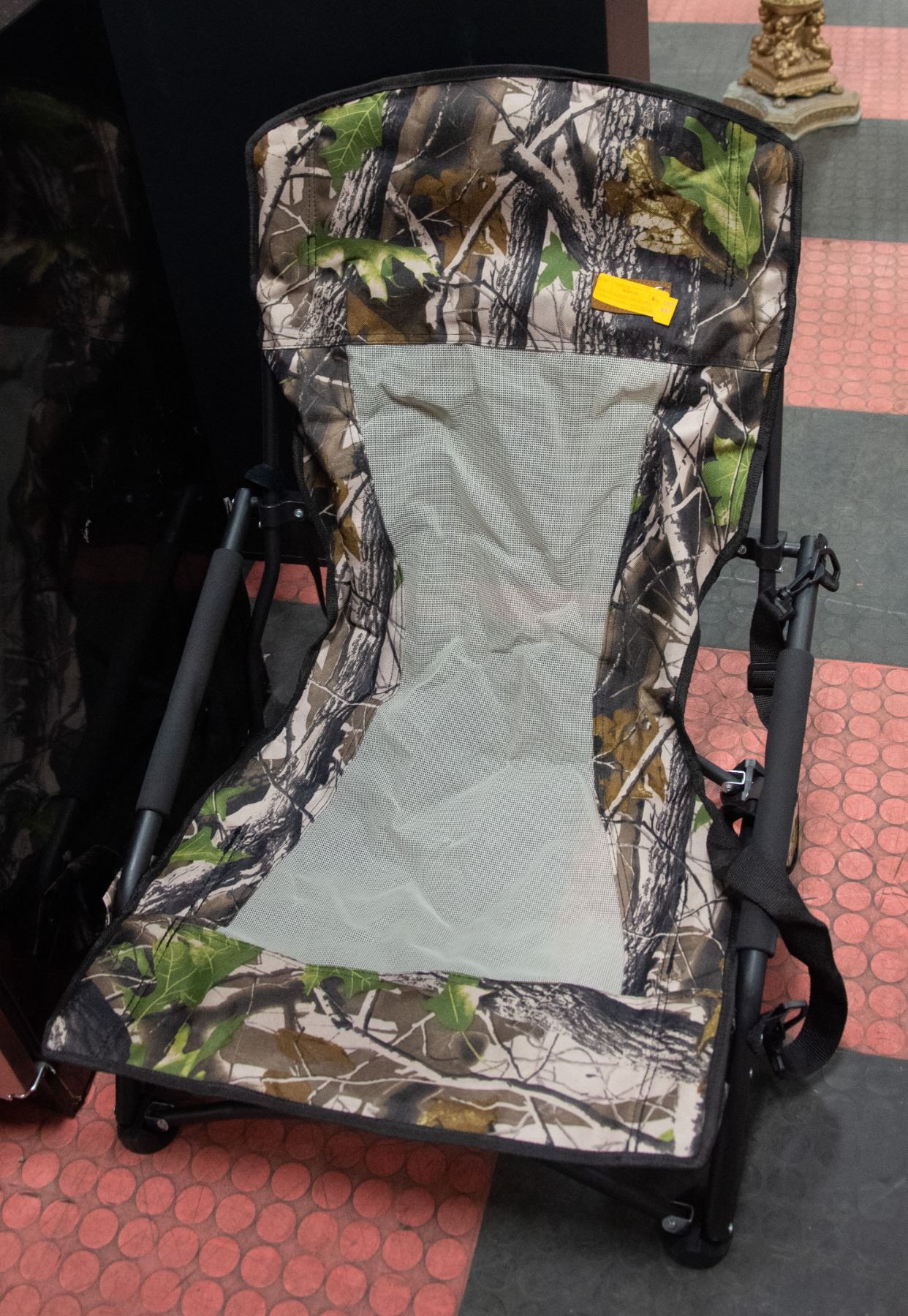 NEW UNPACKED LOW SEATED CAMPING CHAIR, CAMO DESIGN