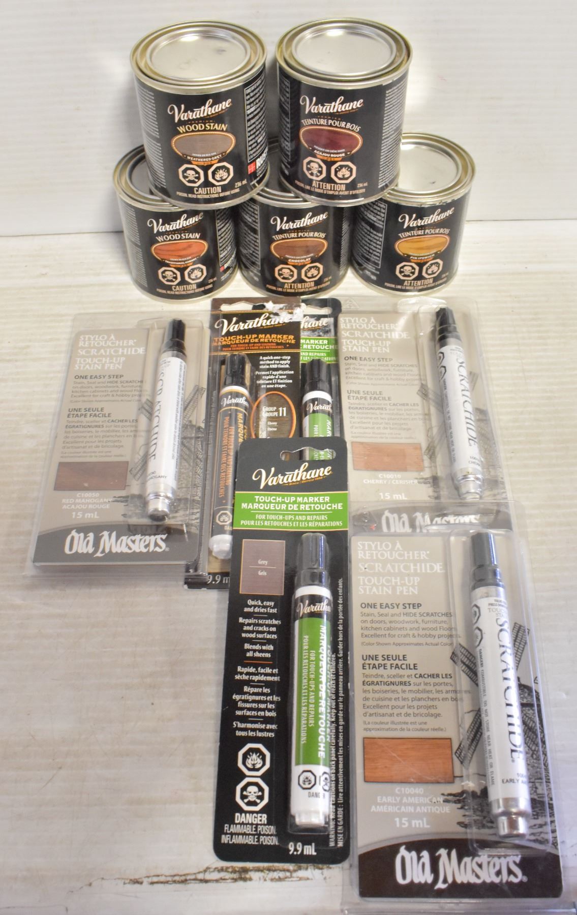 UP MARKERS & (5) VARATHANE WOOD STAIN 236 ML CANS VARIETY OF COLORS