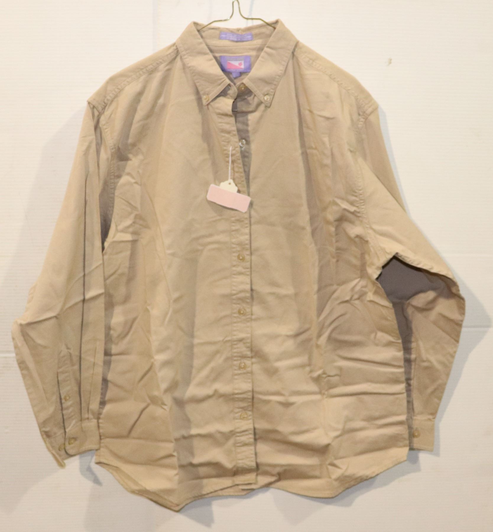 NEW WOMEN'S DANA ERIN COTTON WORK SHIRT, TAN, L