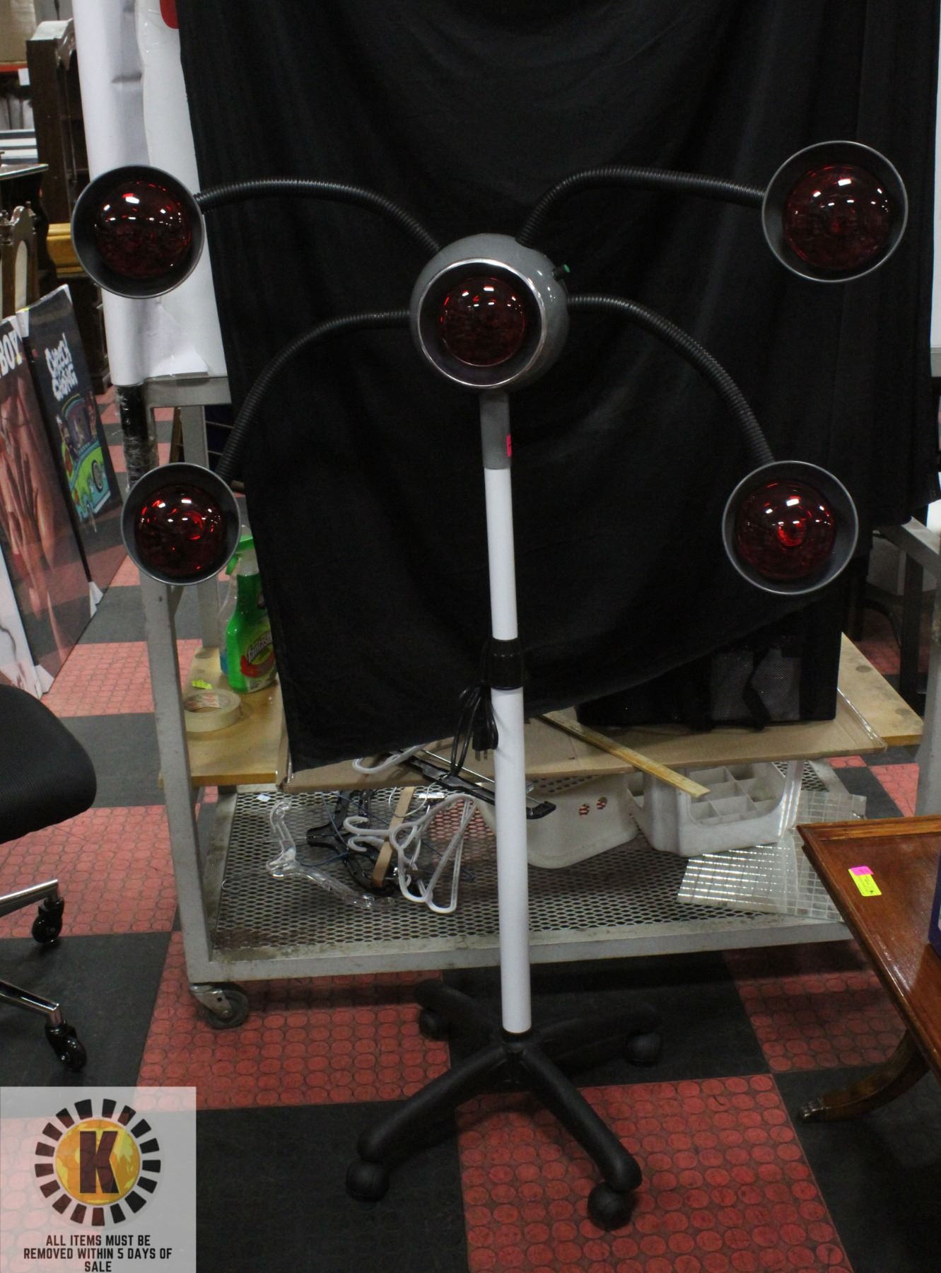 WHEELS, WHITE/GREY FRAME, 750W, ADJUSTABLE TEMPERATURE, BULBS INCLUDED, HAIR DRYER/COLOR FINISHING, TESTED, AMZ SESALL ITEMS MUST BE REMOVED WITHIN 5 DAYS OF SALE