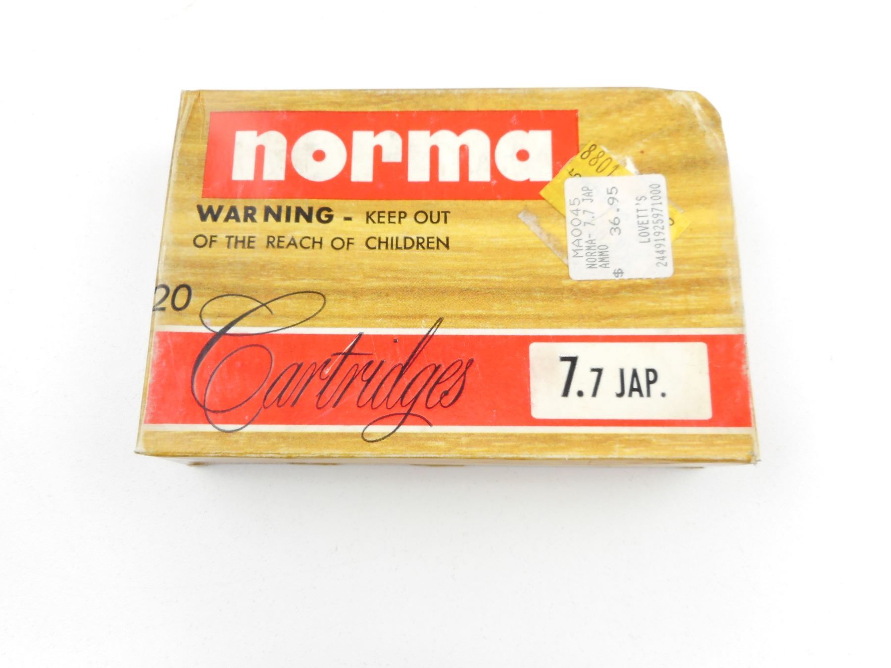 NORMA 7.7 JAP AMMO , 20 RNDS NORMA 7.7 JAP. AMMO, 180 GNRS, SOFT POINT, SEMI POINTED BOATTAIL AMMO