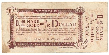 NOTGELD: GERMANY, Erlangen. 1923 0.42 Gold Mark