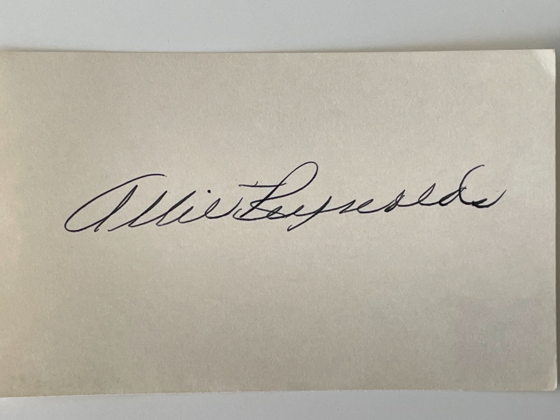 NY Yankees Allie Reynolds original signature. 3x5 inches