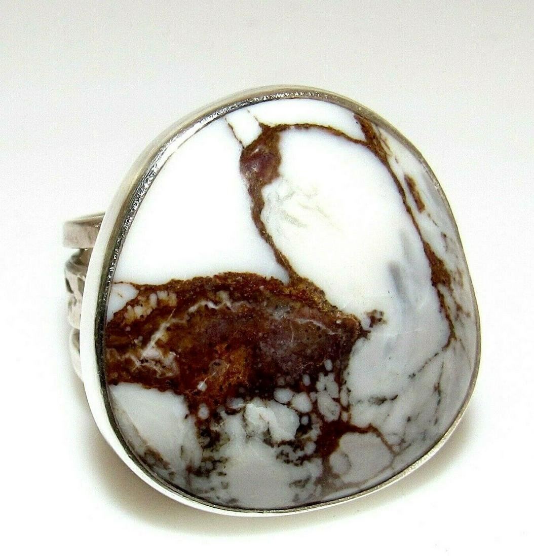 For your consideration is this fab Native American San Felipe sterling silver and gorgeous Wild Horse stone ring in size 9. This fabulous statement ring features a traditional Native design in sterling silver accented with a beautiful, natural Wild Horse stone with gorgeous matrix. Signed by the artist, stamped sterling. Size 9. The front of the ring measures about 1 1/4". Stunning example of wearable Native American art to add to any collection!