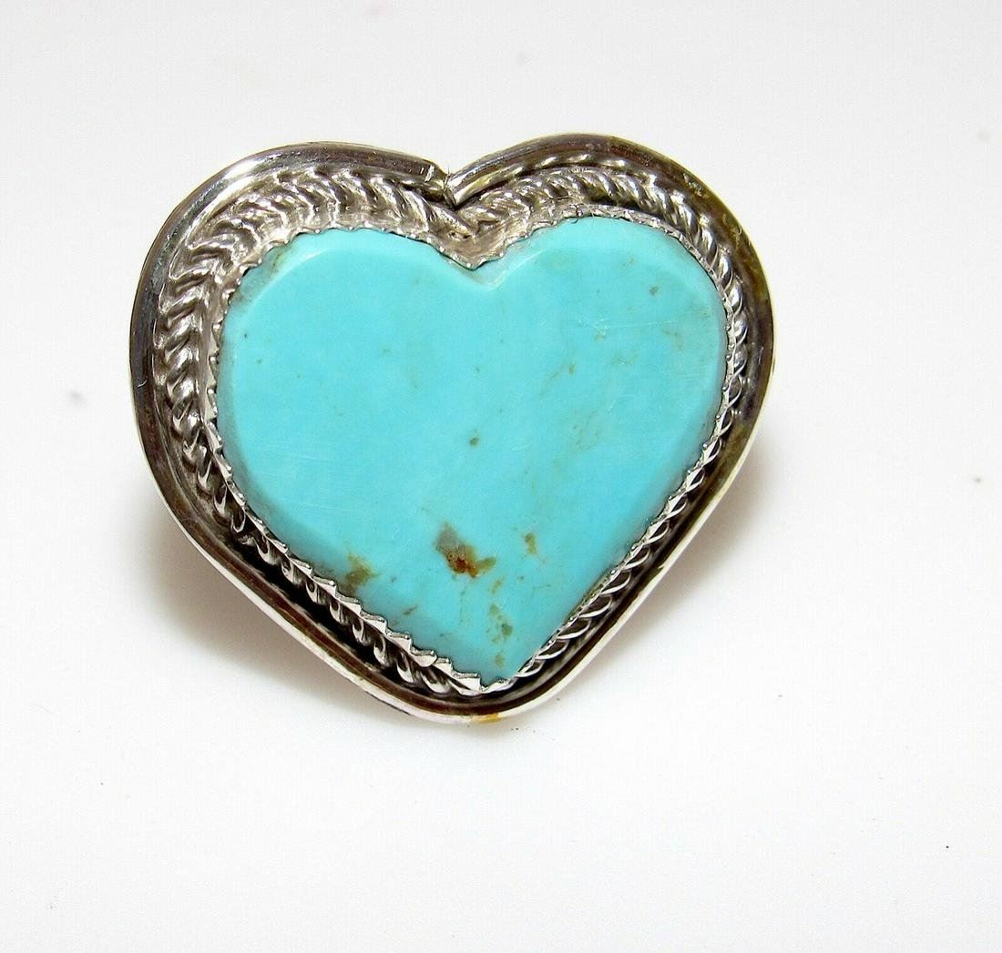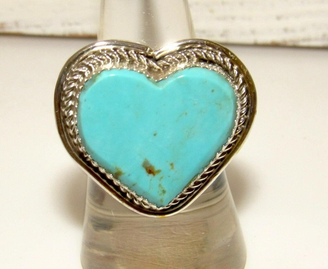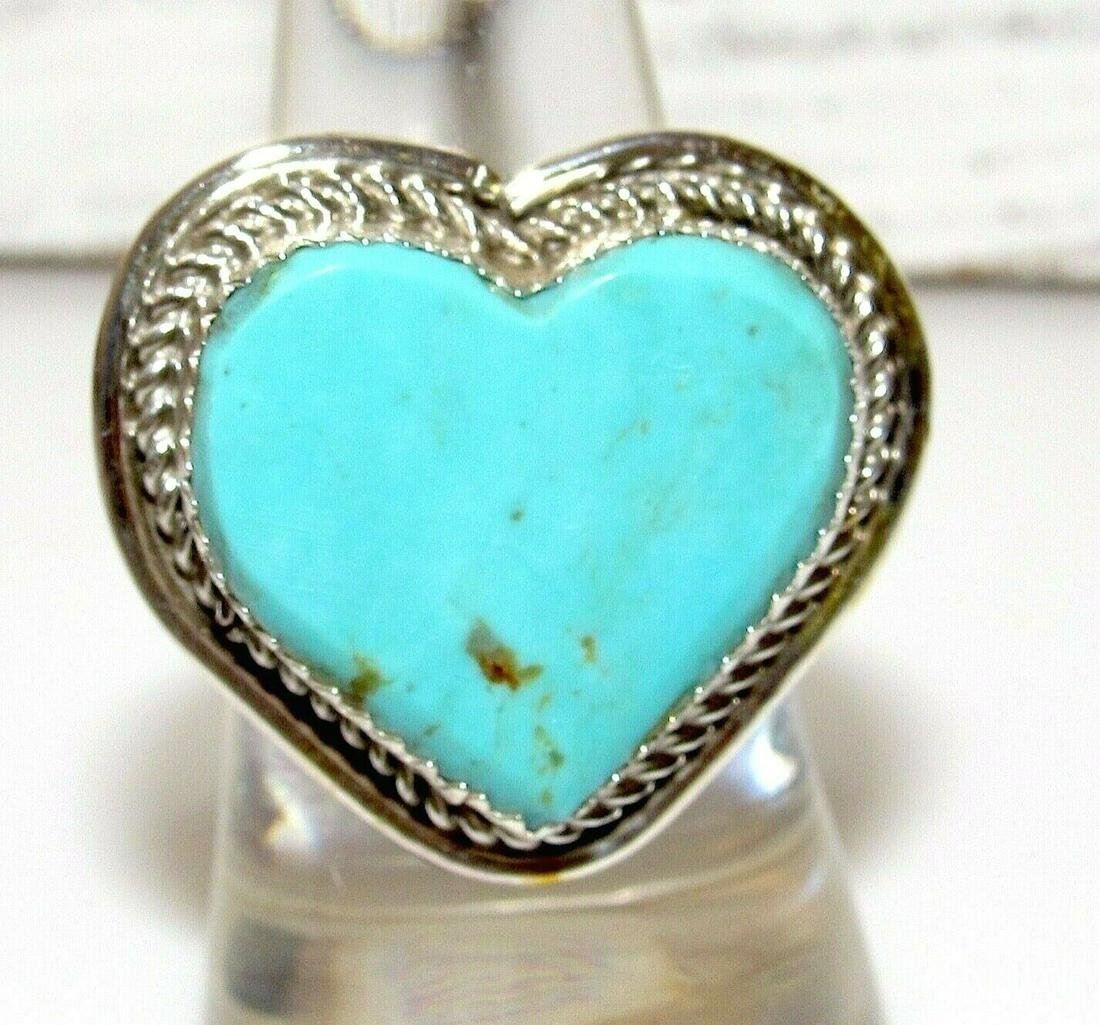 Navajo Dry Creek Turquoise Heart Ring Sz 8 Sterling