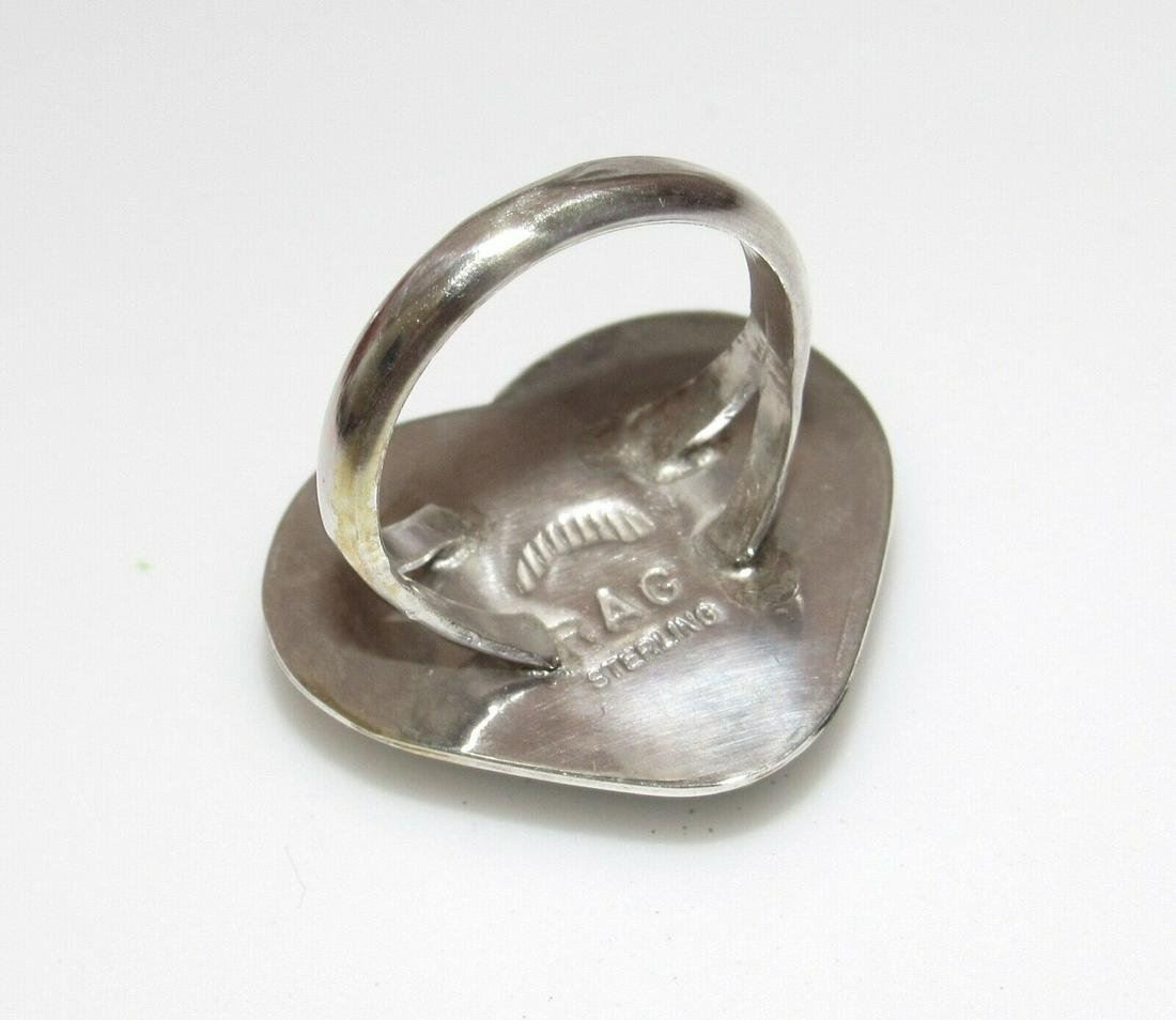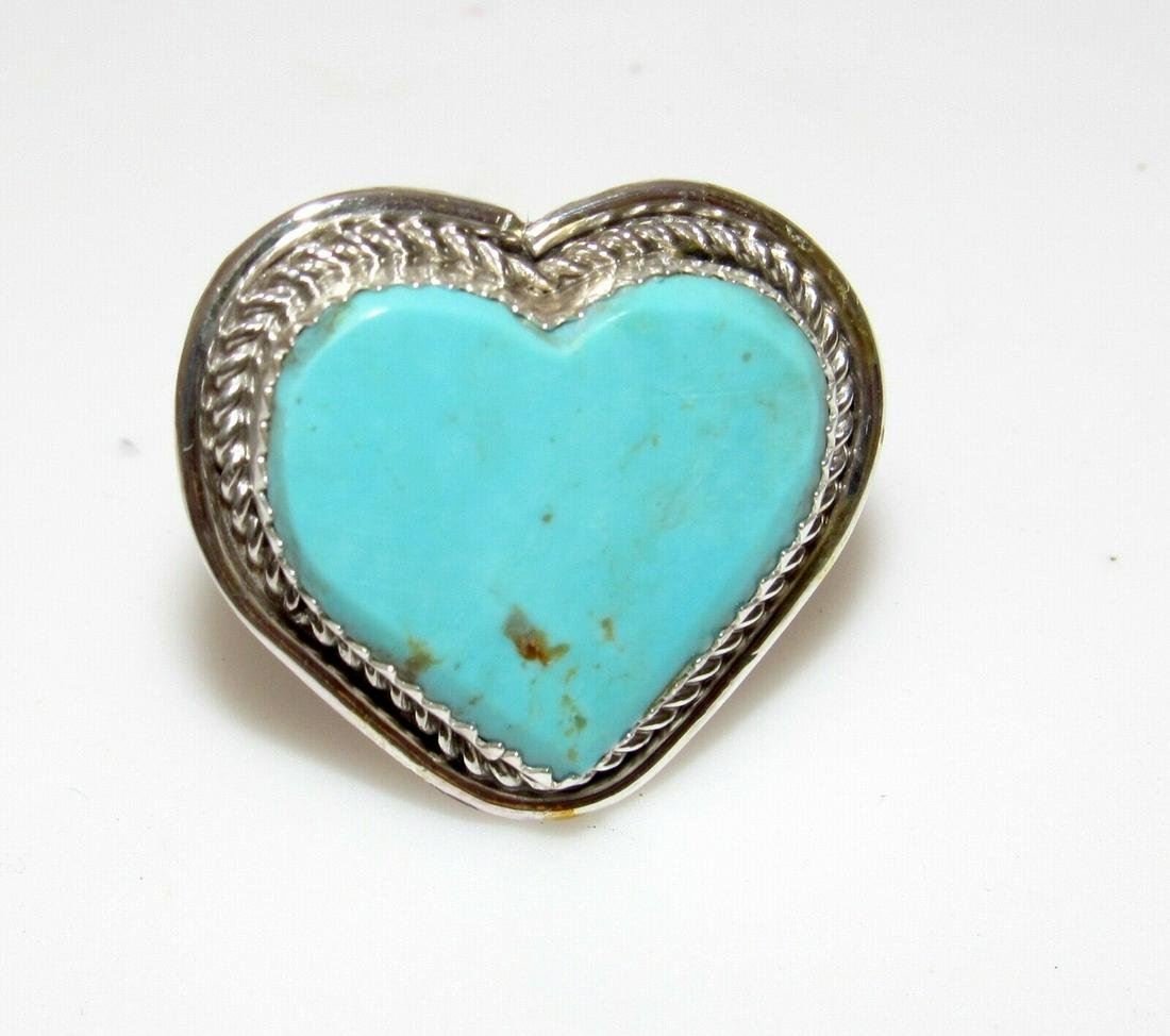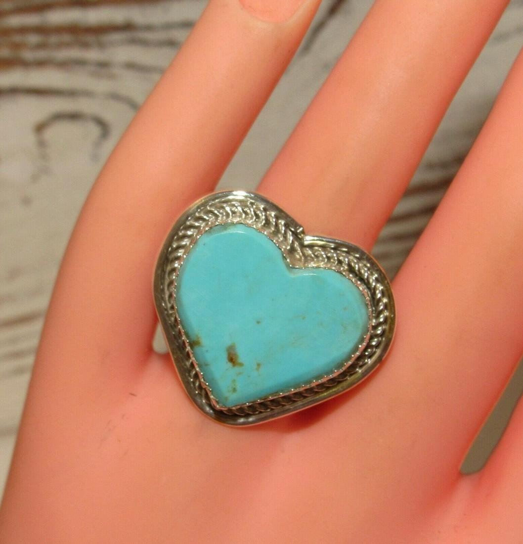 Navajo Dry Creek Turquoise Heart Ring Sz 8 Sterling