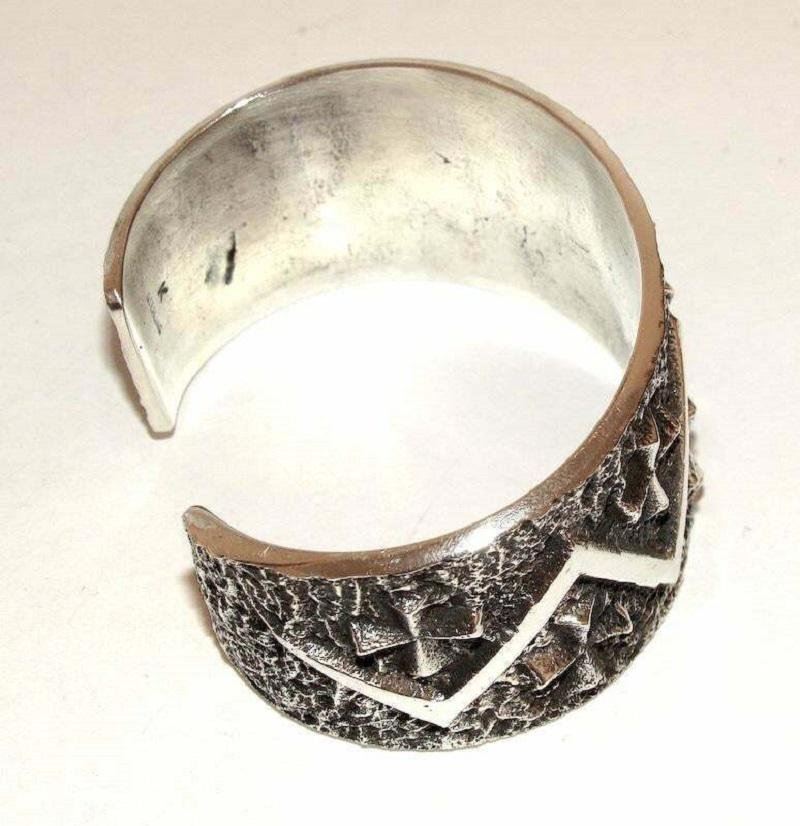 Spectacular Navajo Kevin Yazzie sterling silver tufa cast statement cuff bracelet. Intricate cast cross design. The cuff weighs about 100 gr. The inside circumference is about 7”, 1.5" on the front. Singed, marked, tested. Exceptional craftsmanship and attention to detail. Award winning, highly collectible and sought-after Navajo artist.