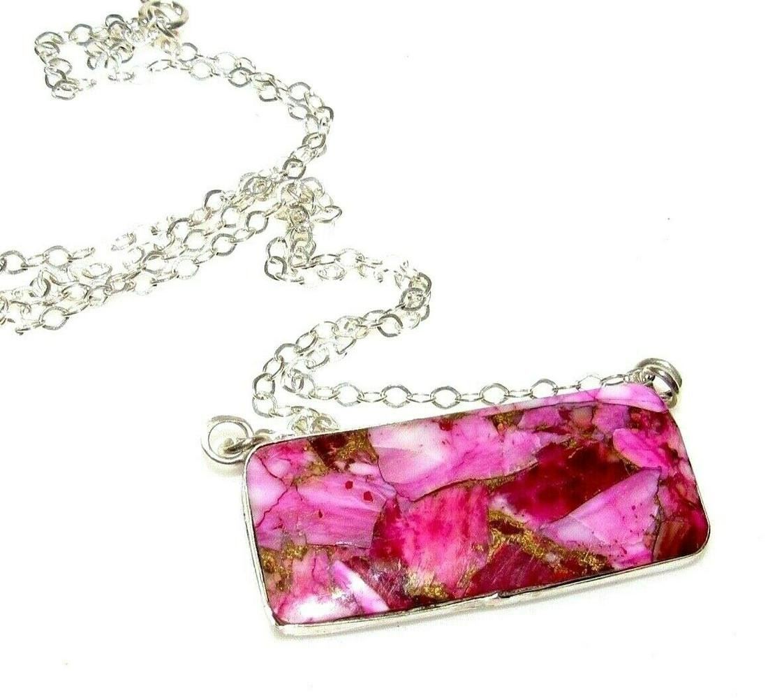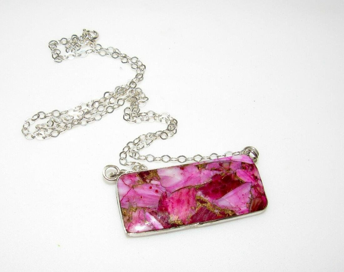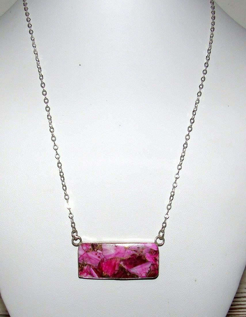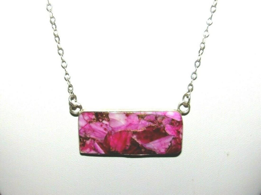 For your consideration is this fab Navajo sterling silver, purple spiny oyster reversible (stone on both sides) bar necklace. The necklace is about 20" and the length can be adjusted. The turquoise bar pendant measures about 1 1/2" wide by about 1/2". Reversible slab pendant. Gorgeous stone, sterling chain necklace. Fab necklace.