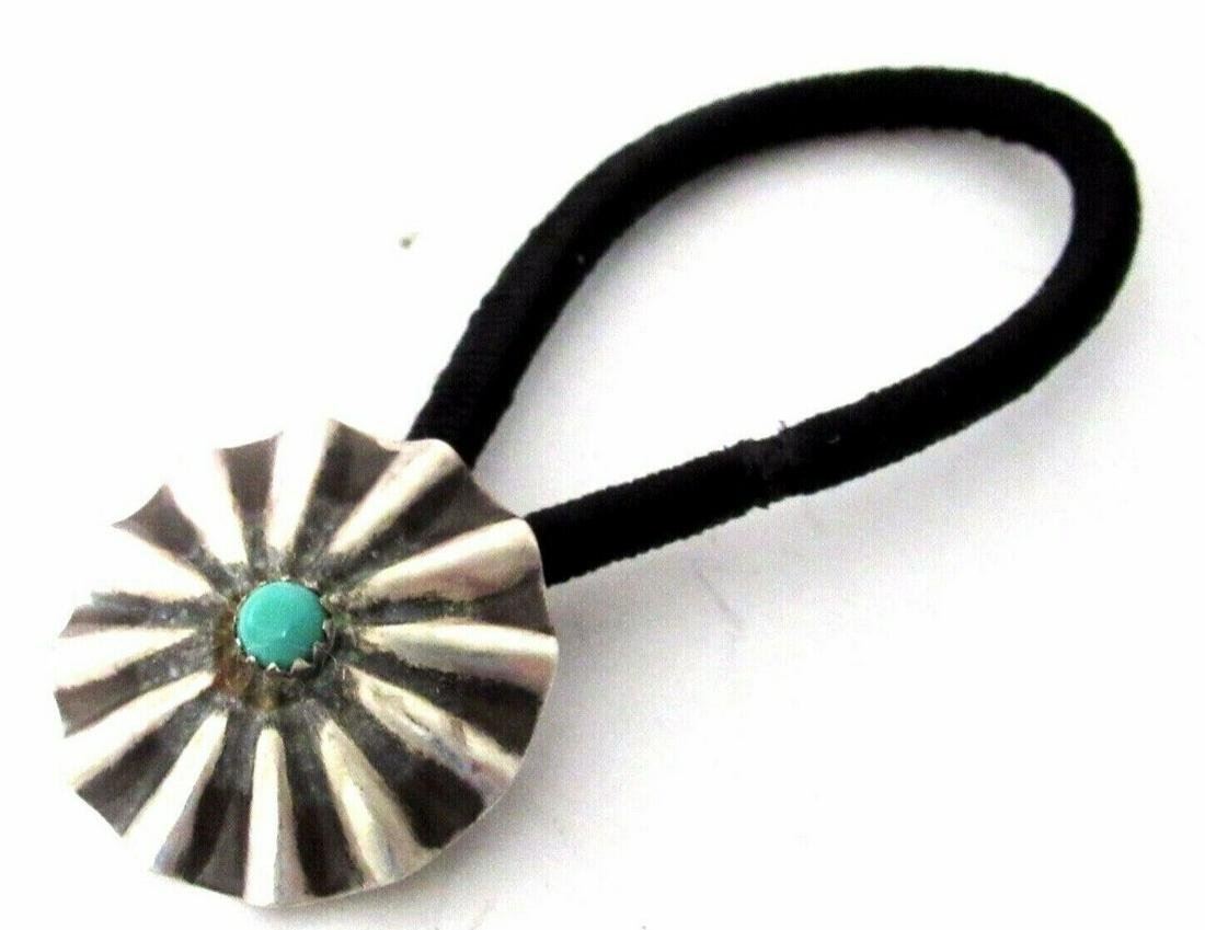 Navajo Small Concho Hair Tie Sterling Silver Turquoise