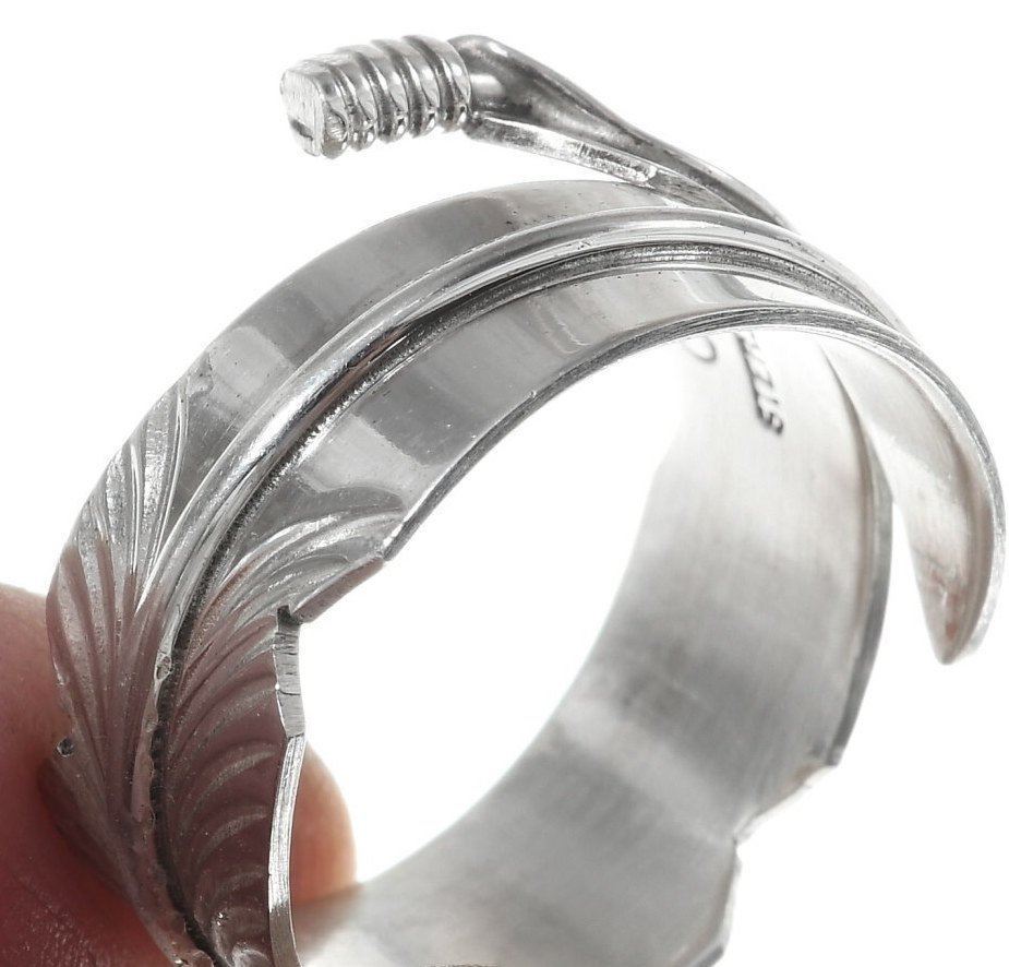 Navajo sterling silver wrap around style feather adjustable ring, crated by the Navajo artist A. Davis. Stamped, tested. Measures about 1/2".