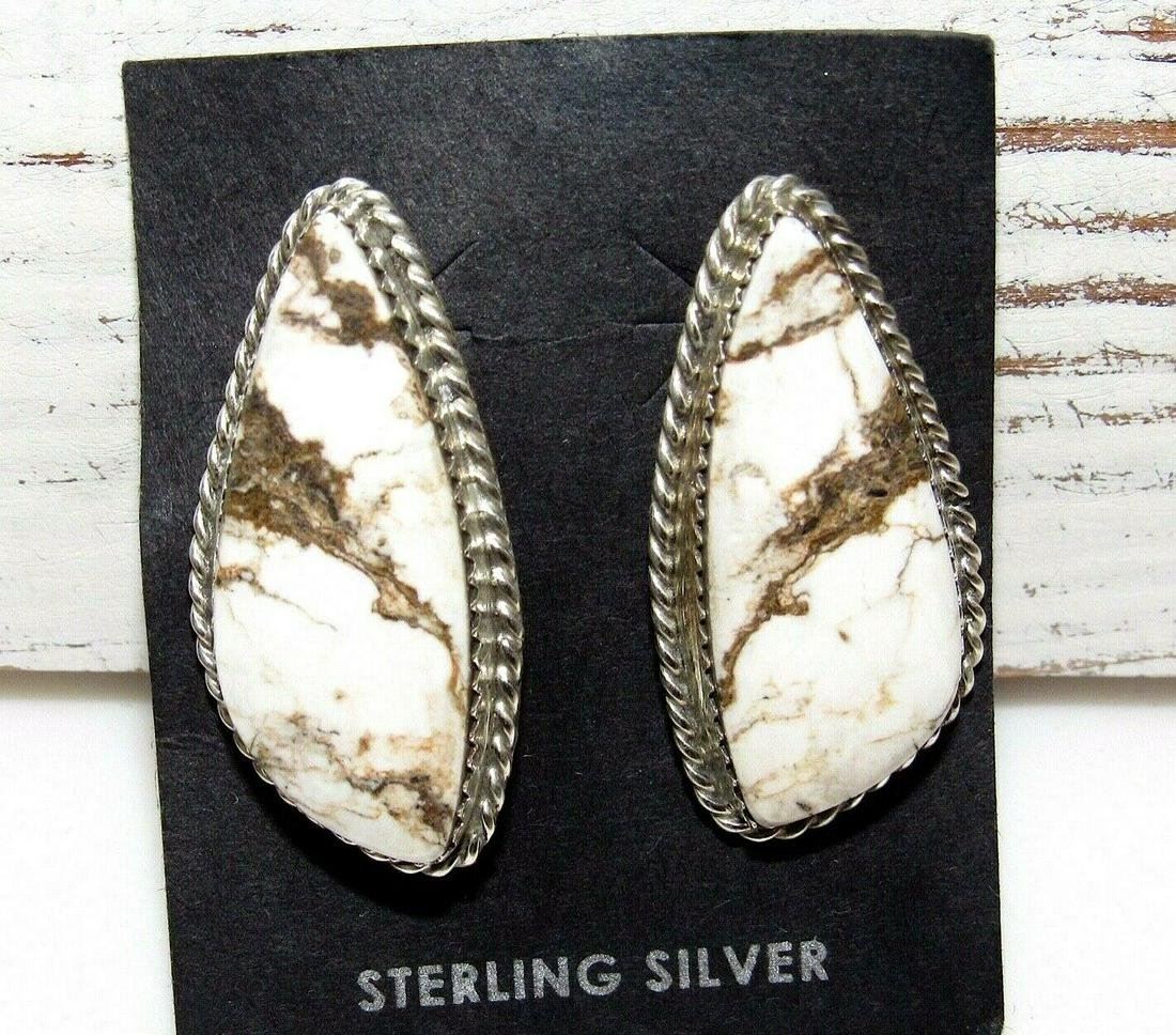 For your consideration is pair of these fab Navajo sterling silver and wild horse post earrings. The earrings measure about 1 1/2" long by about 1/2" wide. Marked "sterling" on the back. Gorgeous stone, beautiful stamp work in sterling. Fab earrings!
