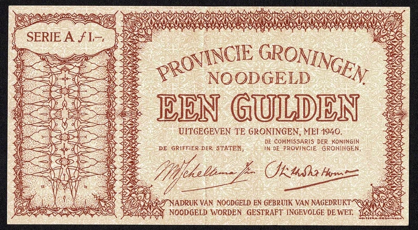 Netherlands 1 Gulden 1940 Groningen Noodgeld Emergency Money PL475.1