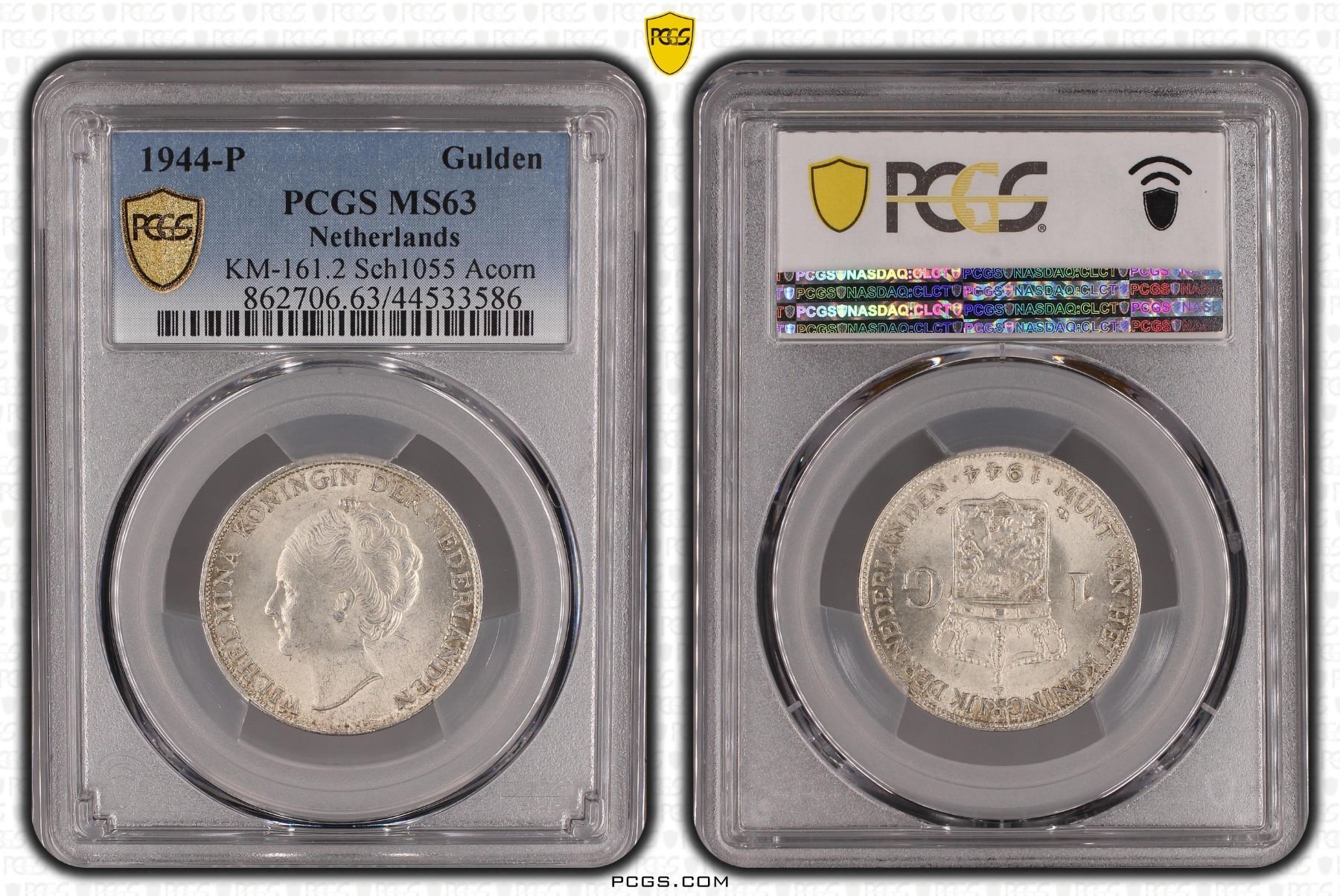 Netherlands 1 Gulden 1944-P KM-161.2 Sch1055 Acorn PCGS MS63