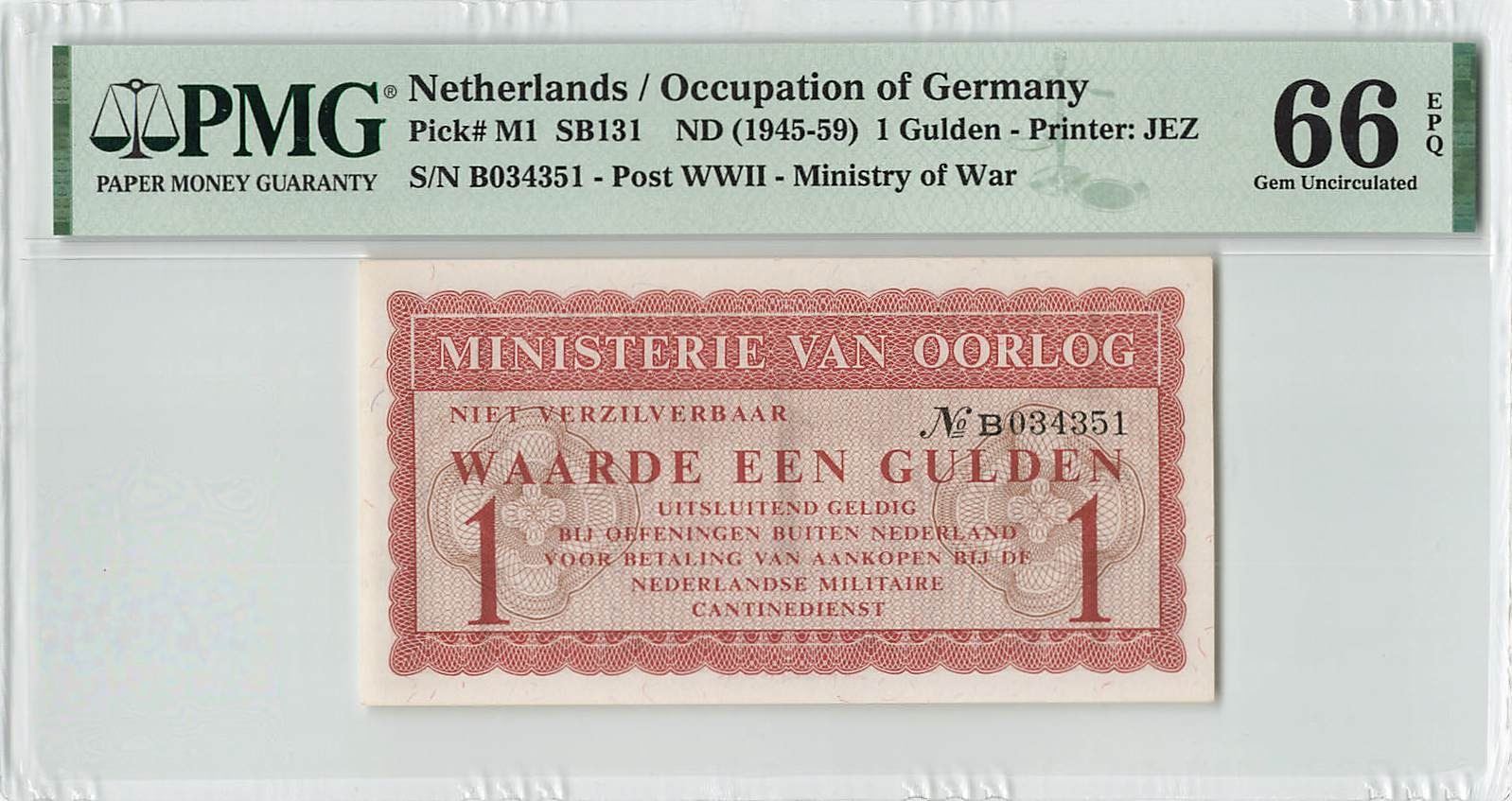 Netherlands 1 Gulden 1945 Ministerie van Oorlog Ministry of War Pick M1 PMG Gem UNC 66 EPQ