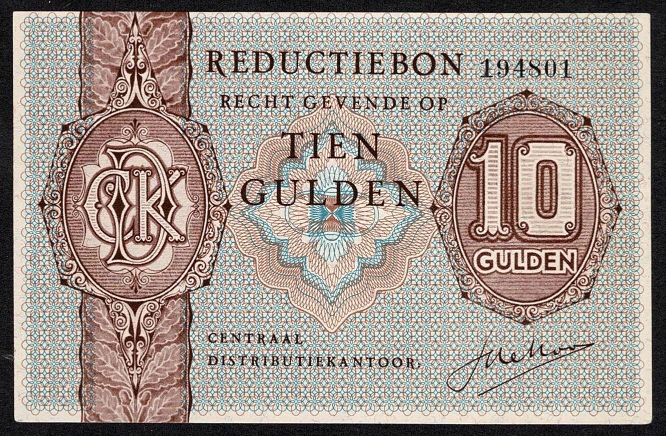 Netherlands 10 Gulden 1940 AU/UNC Reduction voucher Central Distribution Office / Reductiebon Centraal Distributiekantoor PL1115 Unlisted Emission I