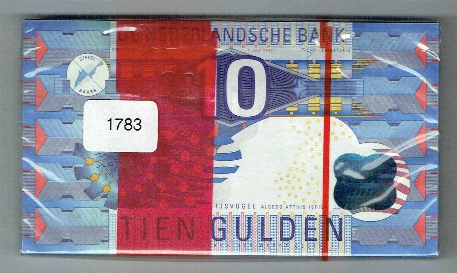 Netherlands 10 Gulden 1997 IJsvogel 100x Original Sealed Bank Bundle Pick 99