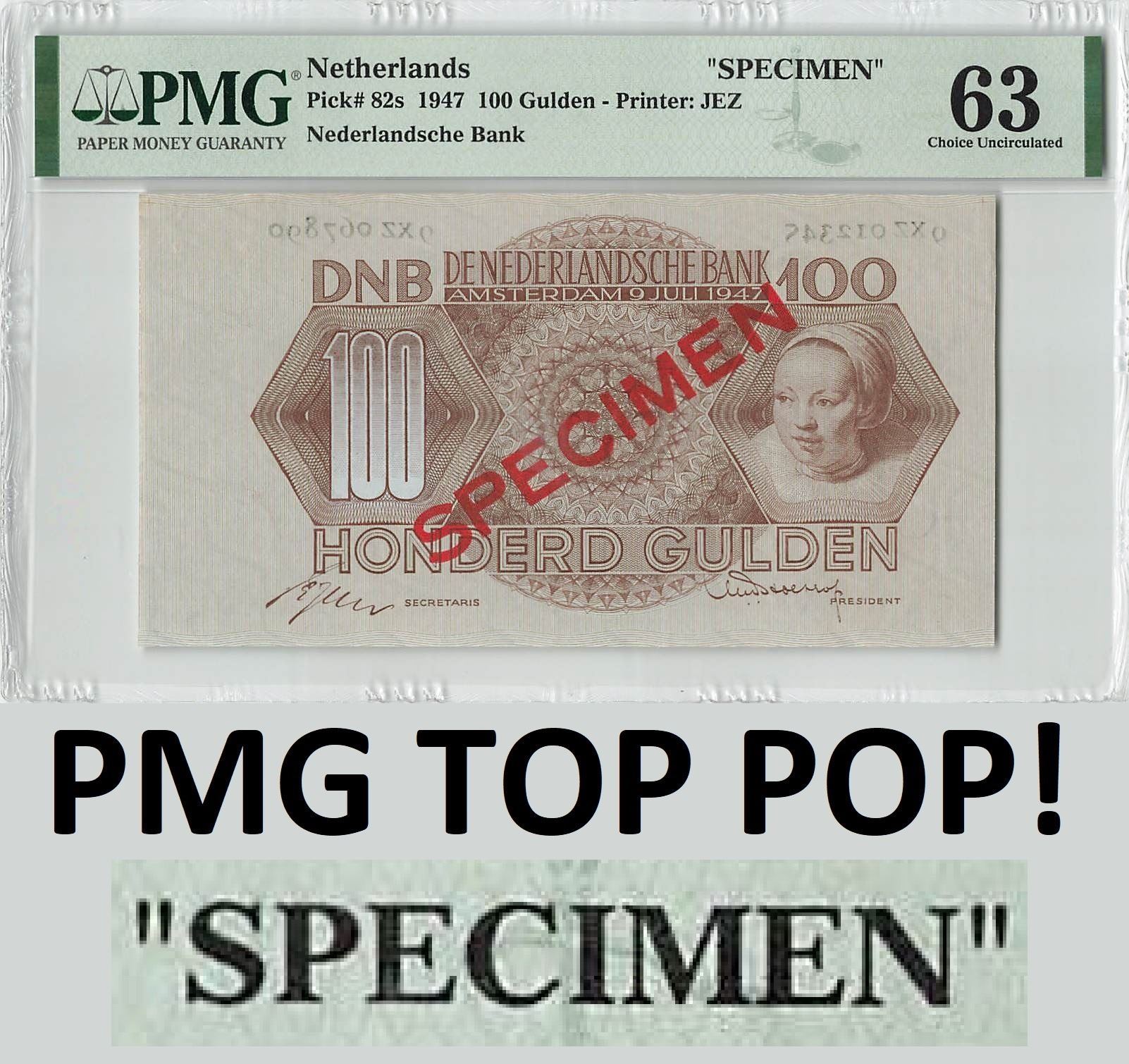 Netherlands 100 Gulden 1947 Specimen Pick 82s PMG Choice Uncirculated 63 TOP POP