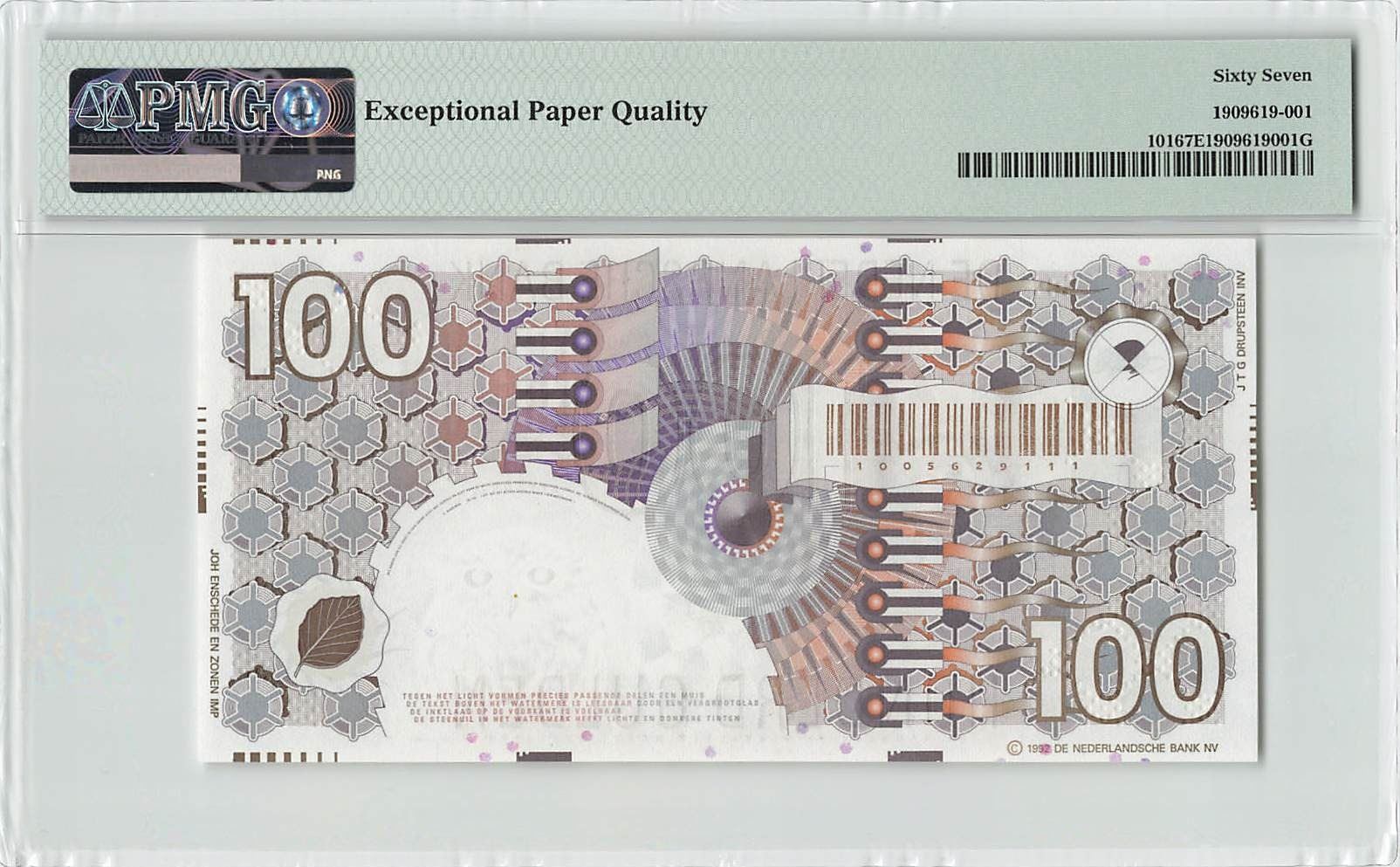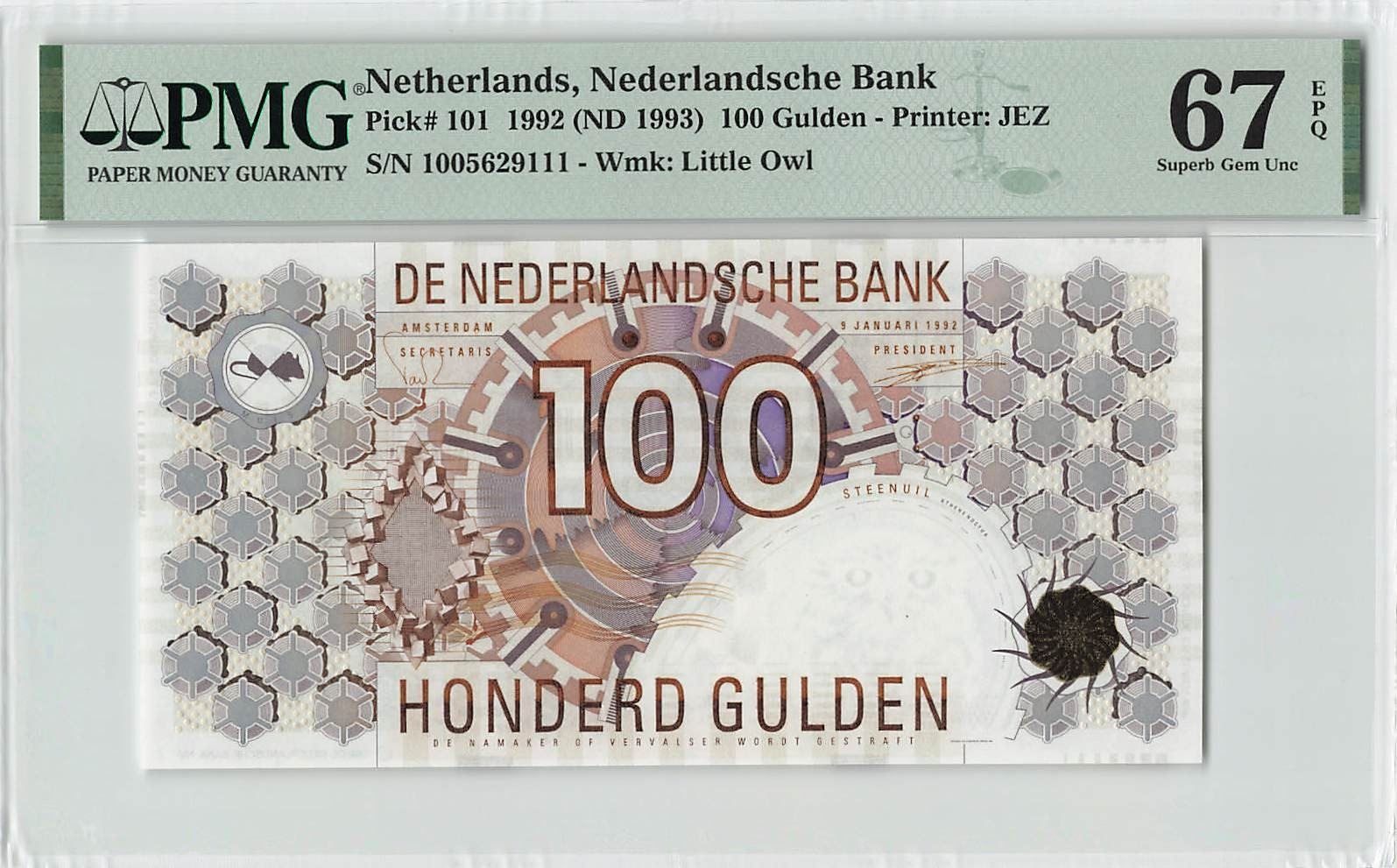 Netherlands 100 Gulden 1992 Little Owl Pick 101 PMG Superb Gem UNC 67 EPQ