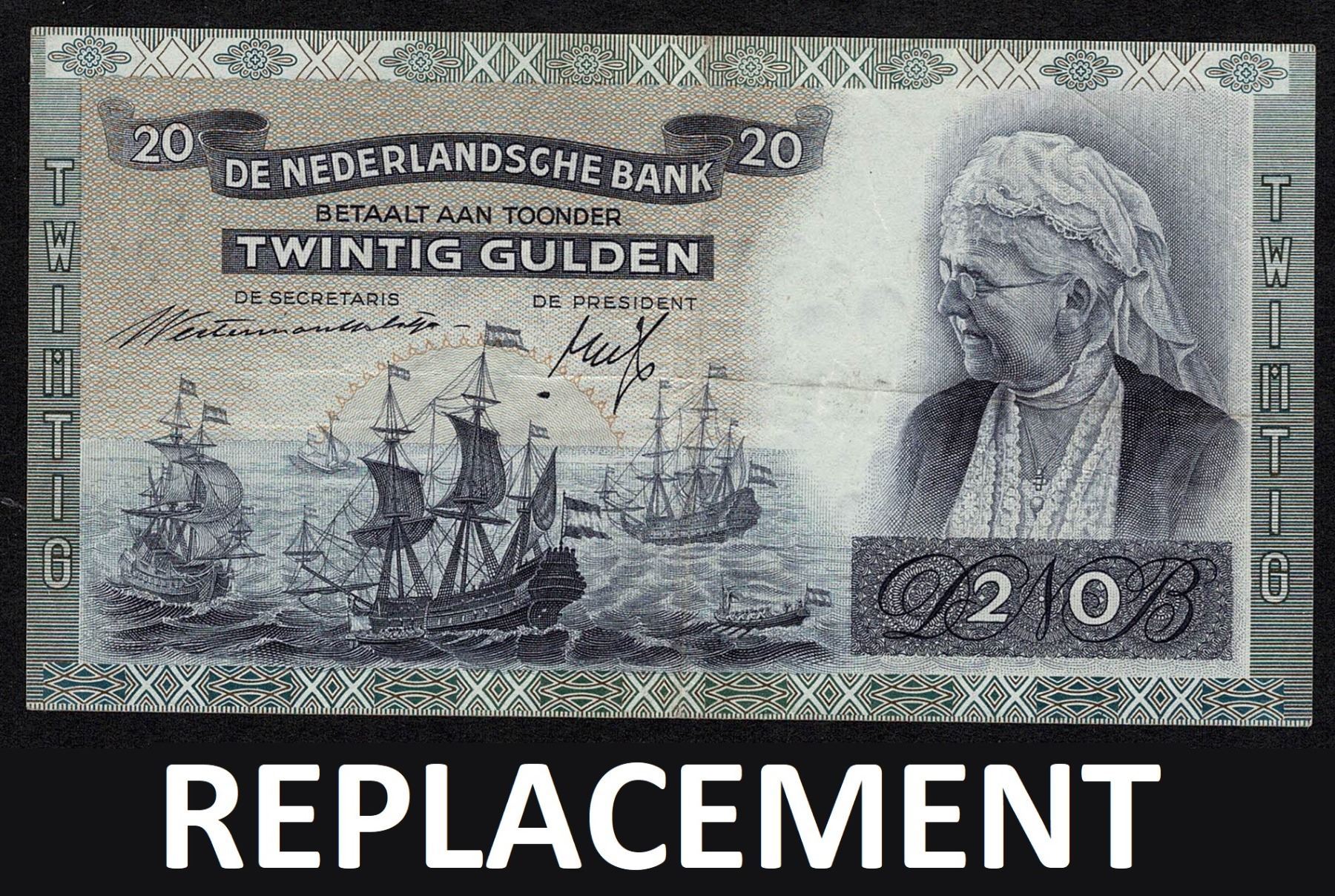 Netherlands 20 Gulden 1941 Replacement Queen Emma Pick 54