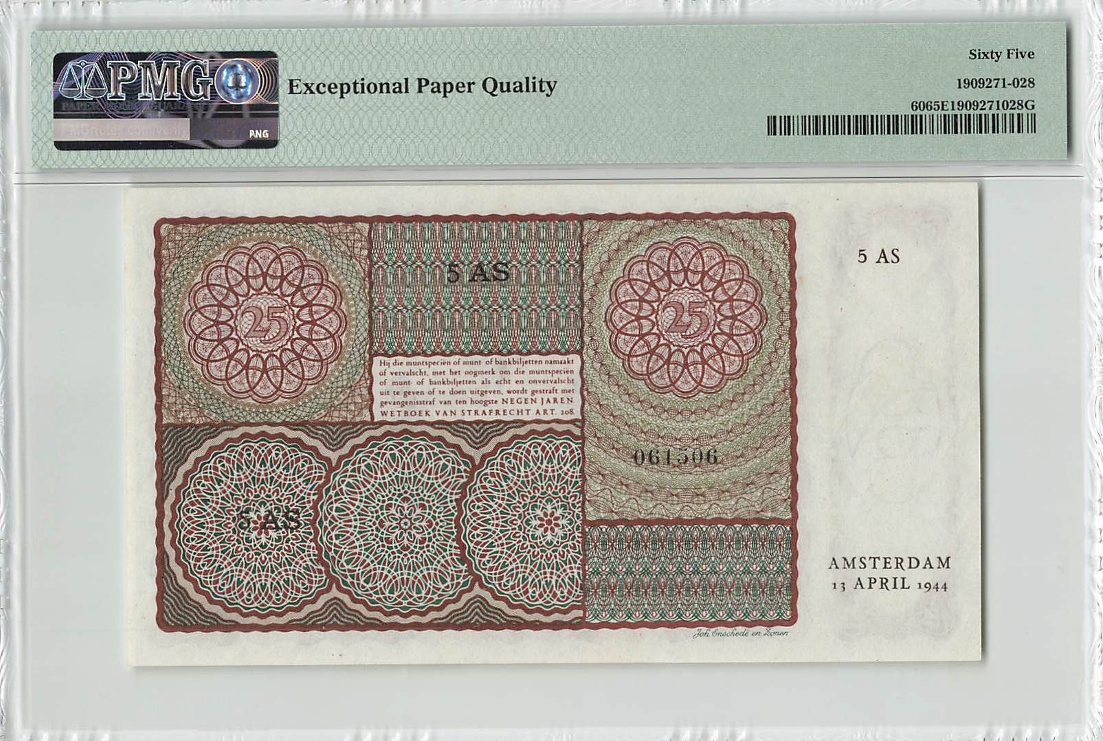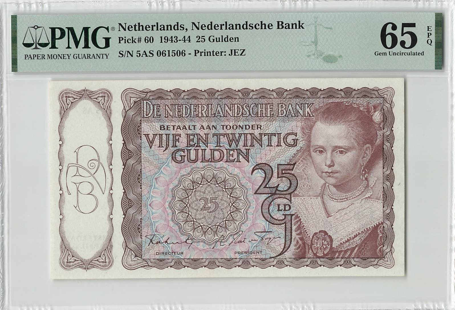Netherlands 25 Gulden 1944 Princess Pick 60 PMG Gem Uncirculated 65 EPQ