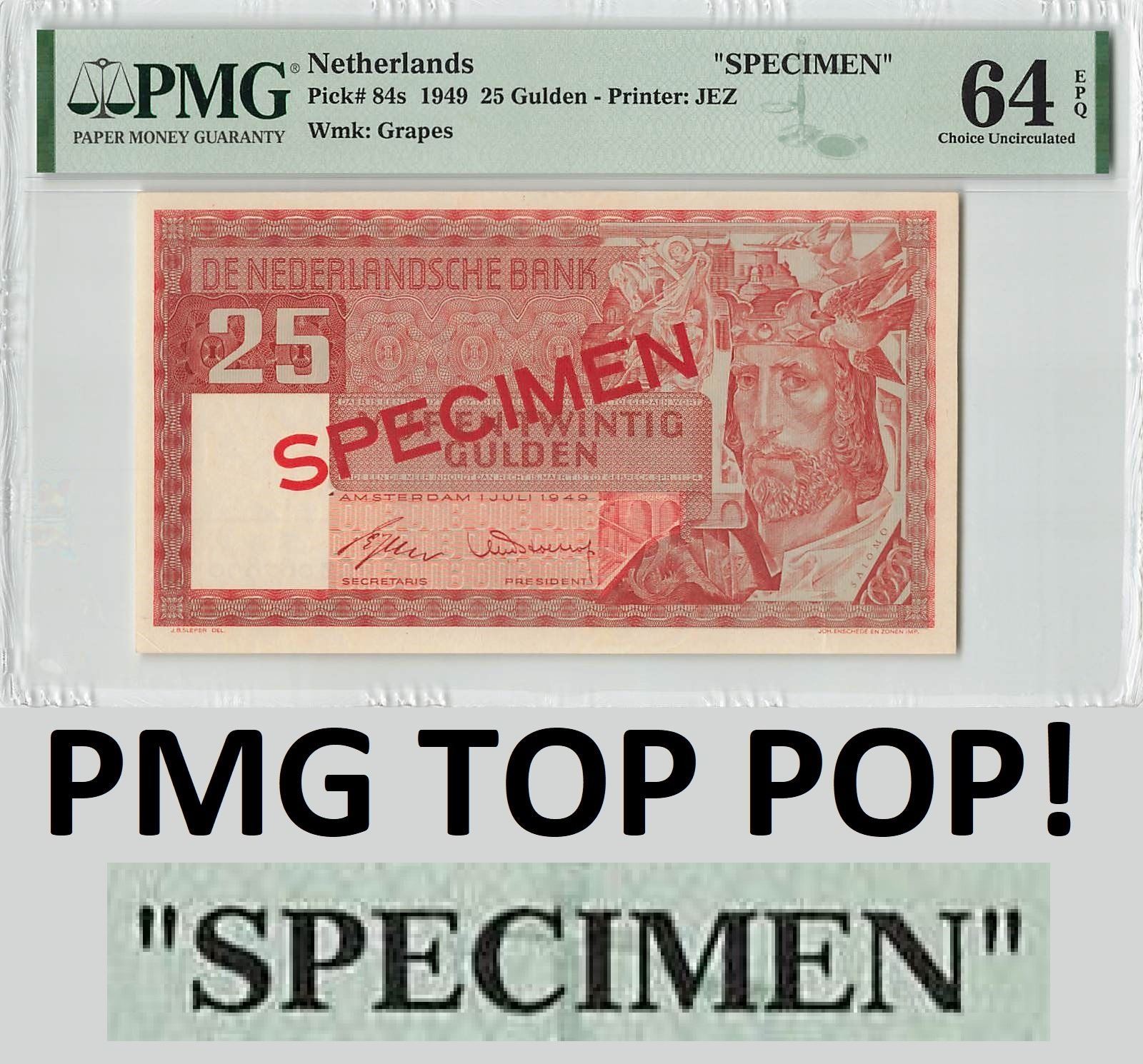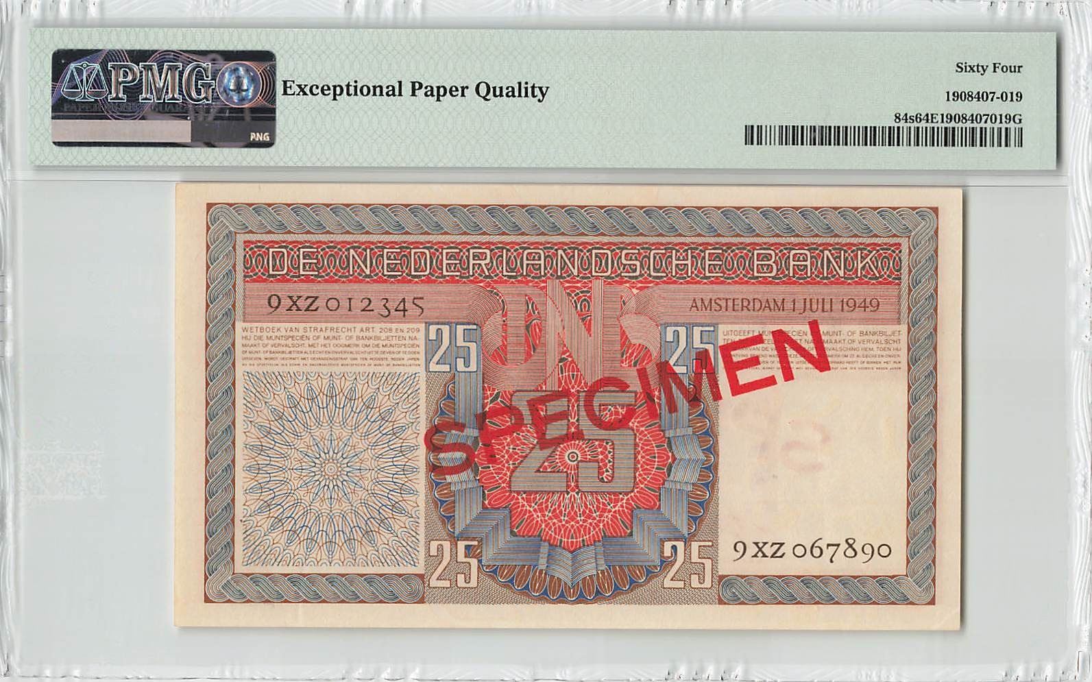 Netherlands 25 Gulden 1949 Specimen King Solomon Pick 84s PMG Choice UNC 64 EPQ TOP POP
