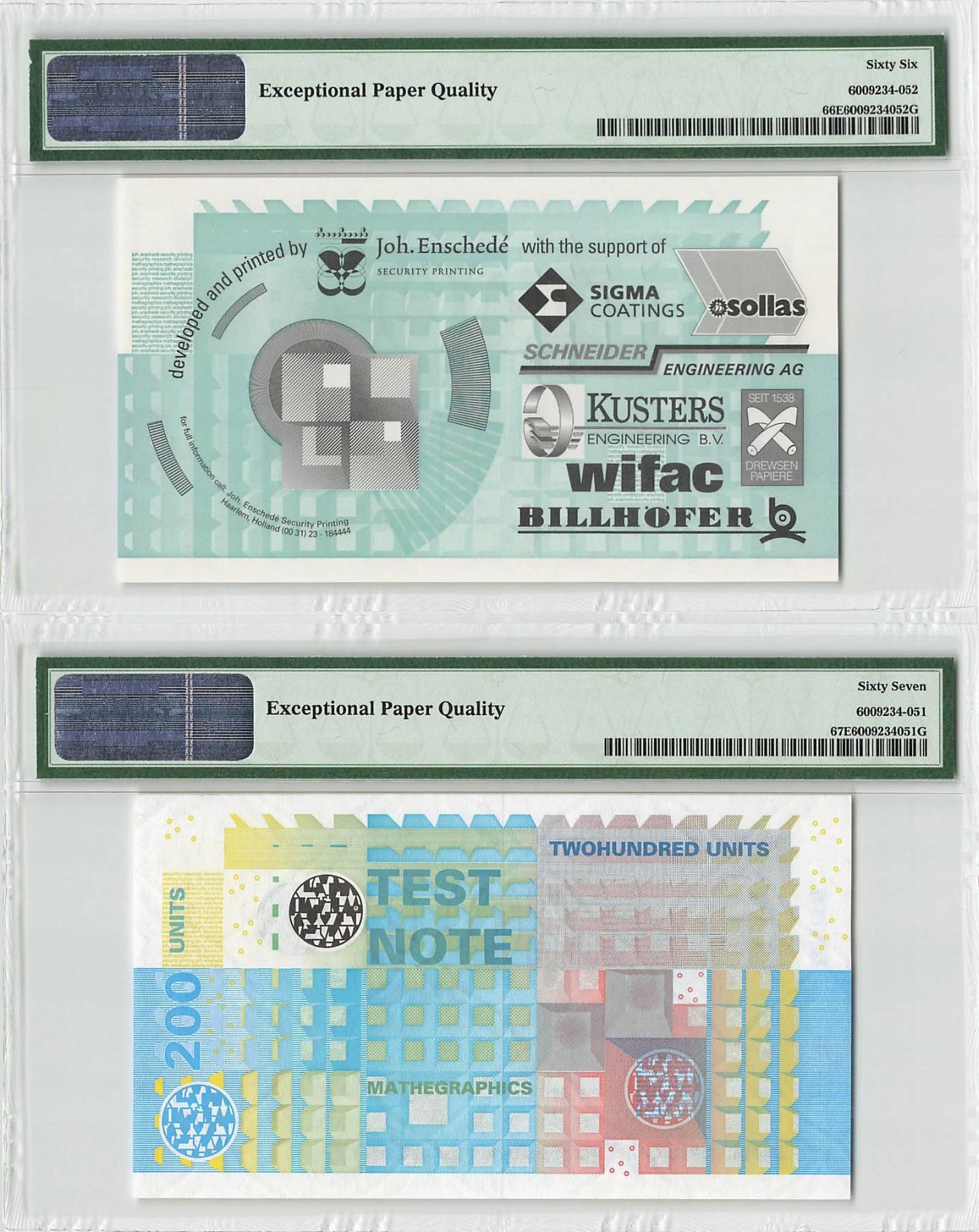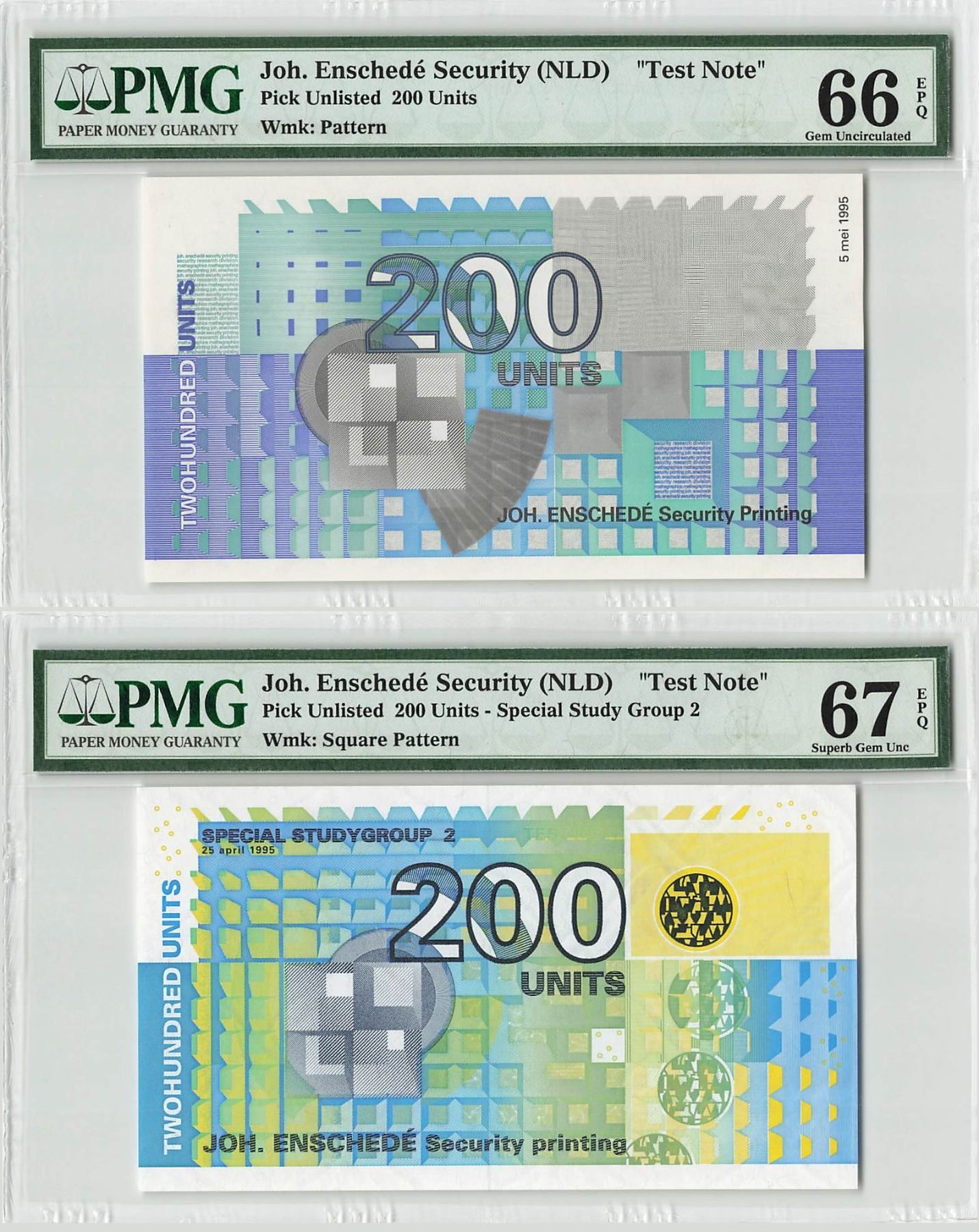 Netherlands 2x 200 Units 1995 Joh. Enschede Testnote Test Note PMG Gem UNC 66 / 67 EPQ