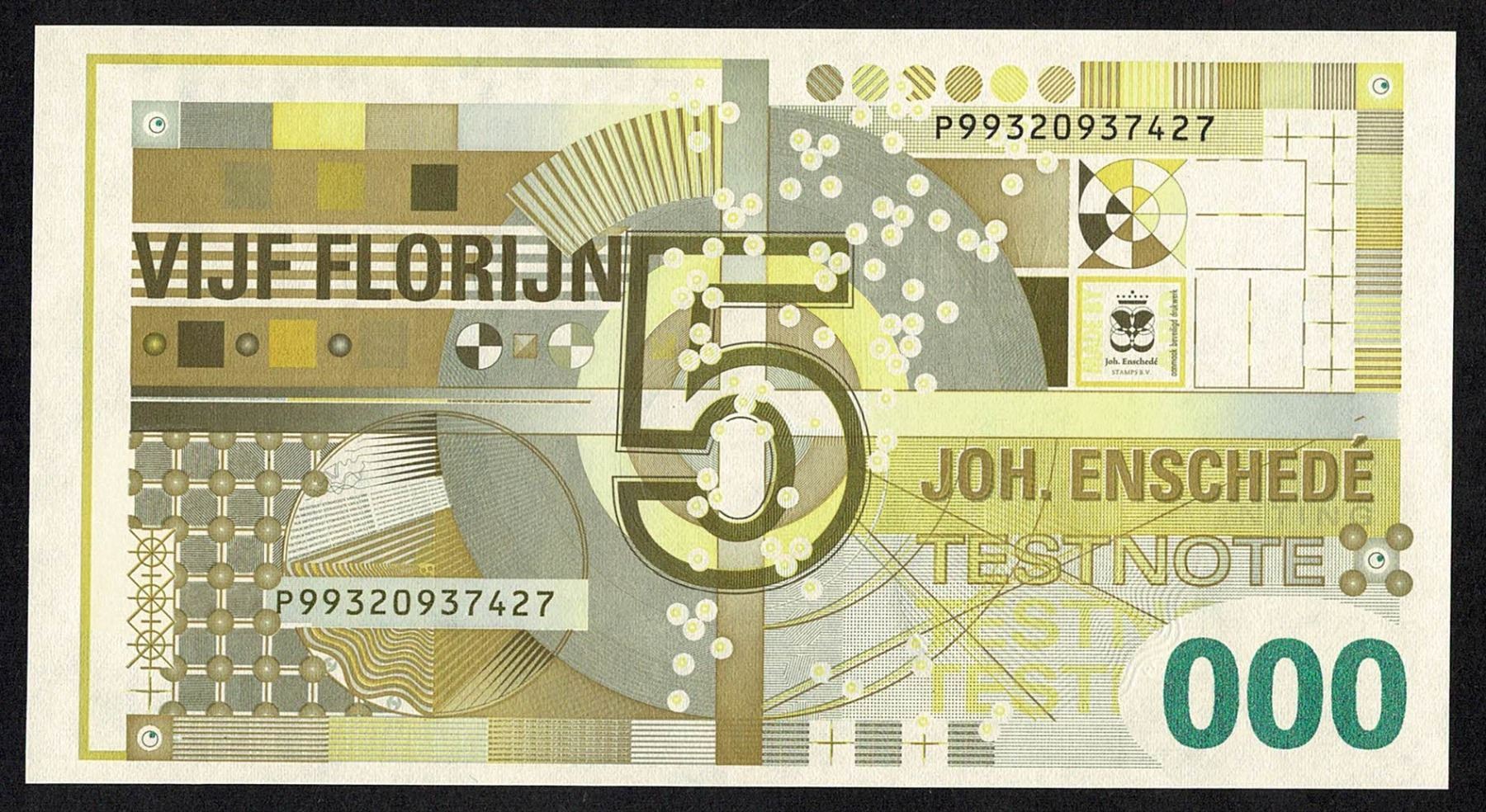 Netherlands 5 Florijn 200 Euro UNC Joh. Enschede Testnote Test note JEZ Green Patch