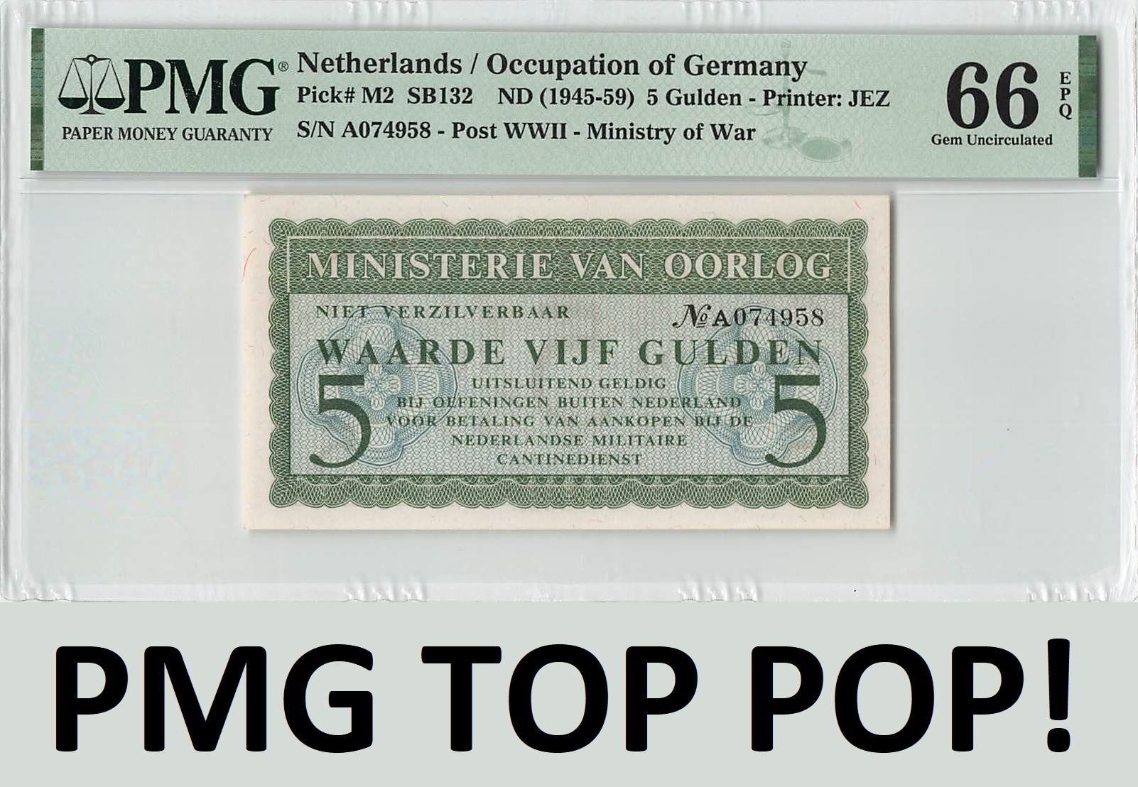 Netherlands 5 Gulden 1945 Ministerie van Oorlog Ministry of War Pick M2 PMG Gem UNC 66 EPQ TOP POP
