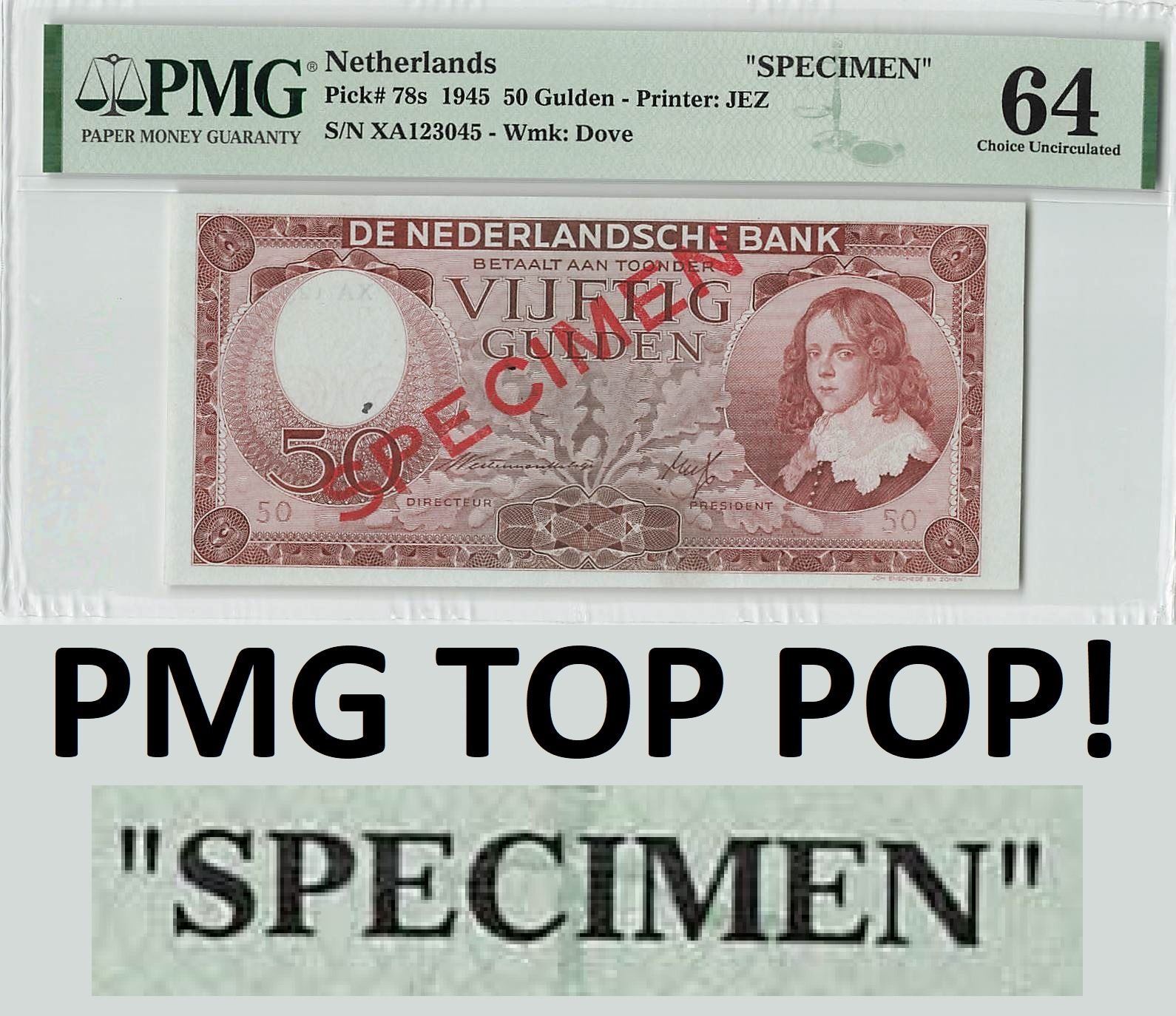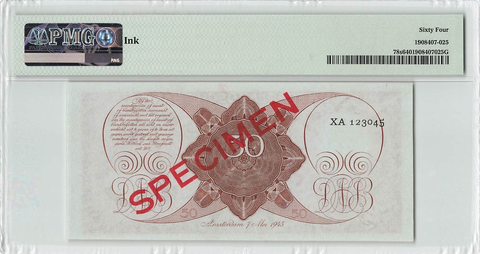 Netherlands 50 Gulden 1945 Specimen Pick 78s PMG Choice Uncirculated 64 TOP POP