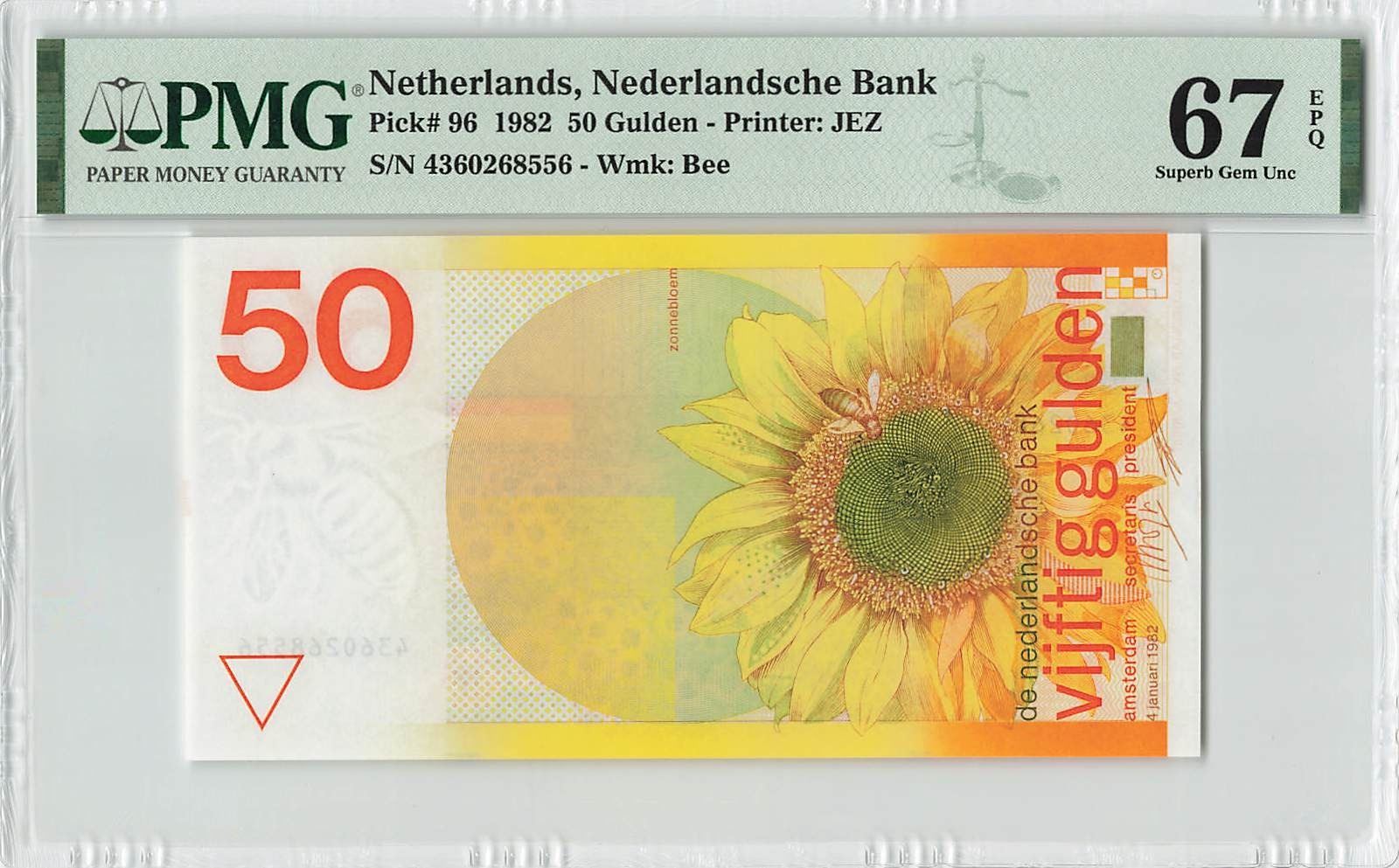 Netherlands 50 Gulden 1982 Sunflower Pick 96 PMG Superb Gem Uncirculated 67 EPQ