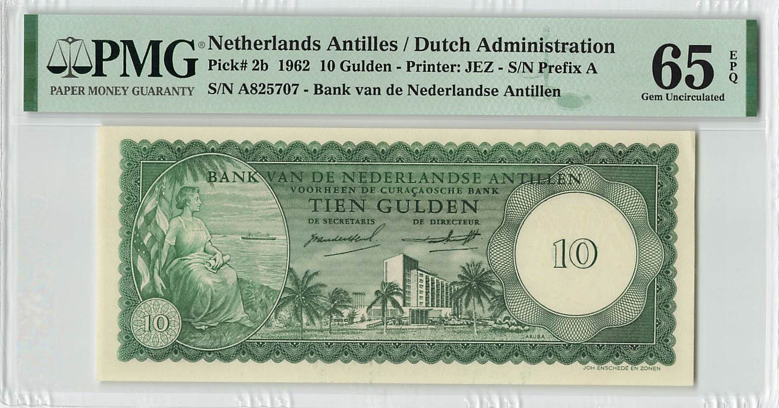 Netherlands Antilles 10 Gulden 1962 Pick 2b PMG Gem Uncirculated 65 EPQ