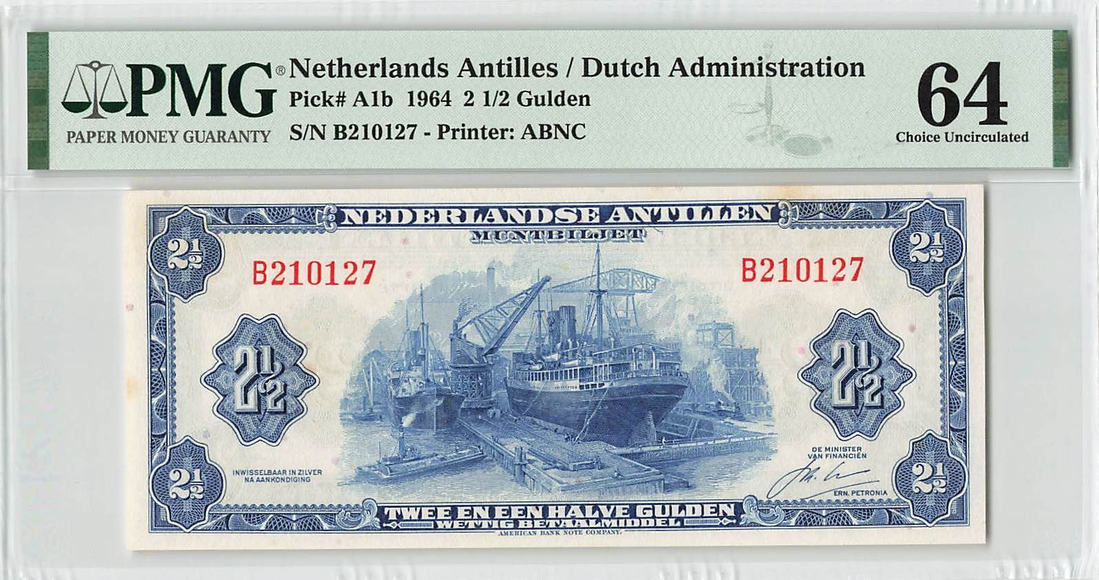 Netherlands Antilles 2½ Gulden 1964 ABNC Pick A1b PMG Choice Uncirculated 64