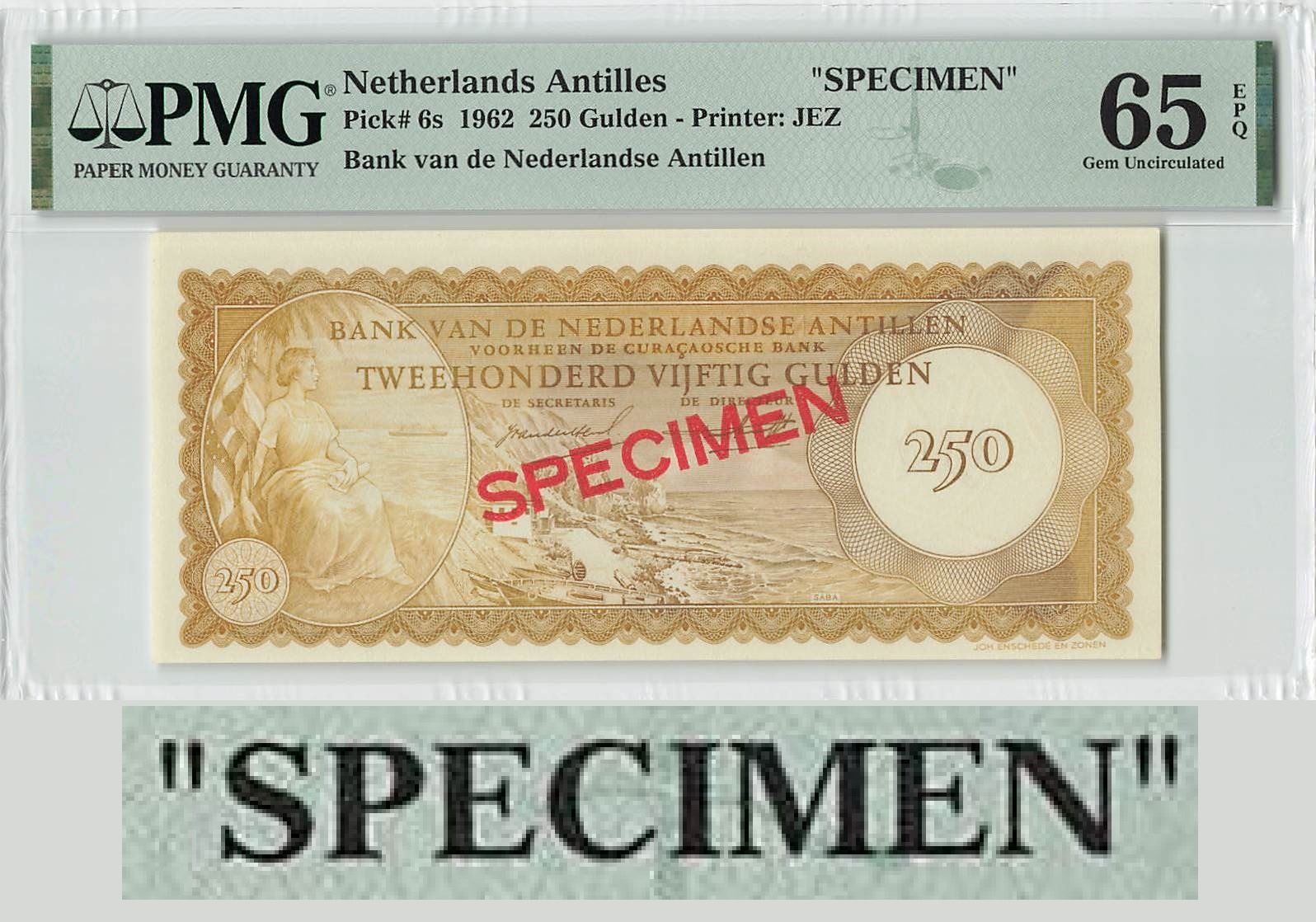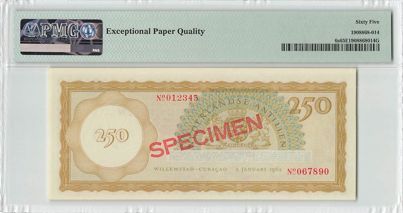Netherlands Antilles 250 Gulden 1962 Specimen Pick 6s PMG Gem Uncirculated 65 EPQ