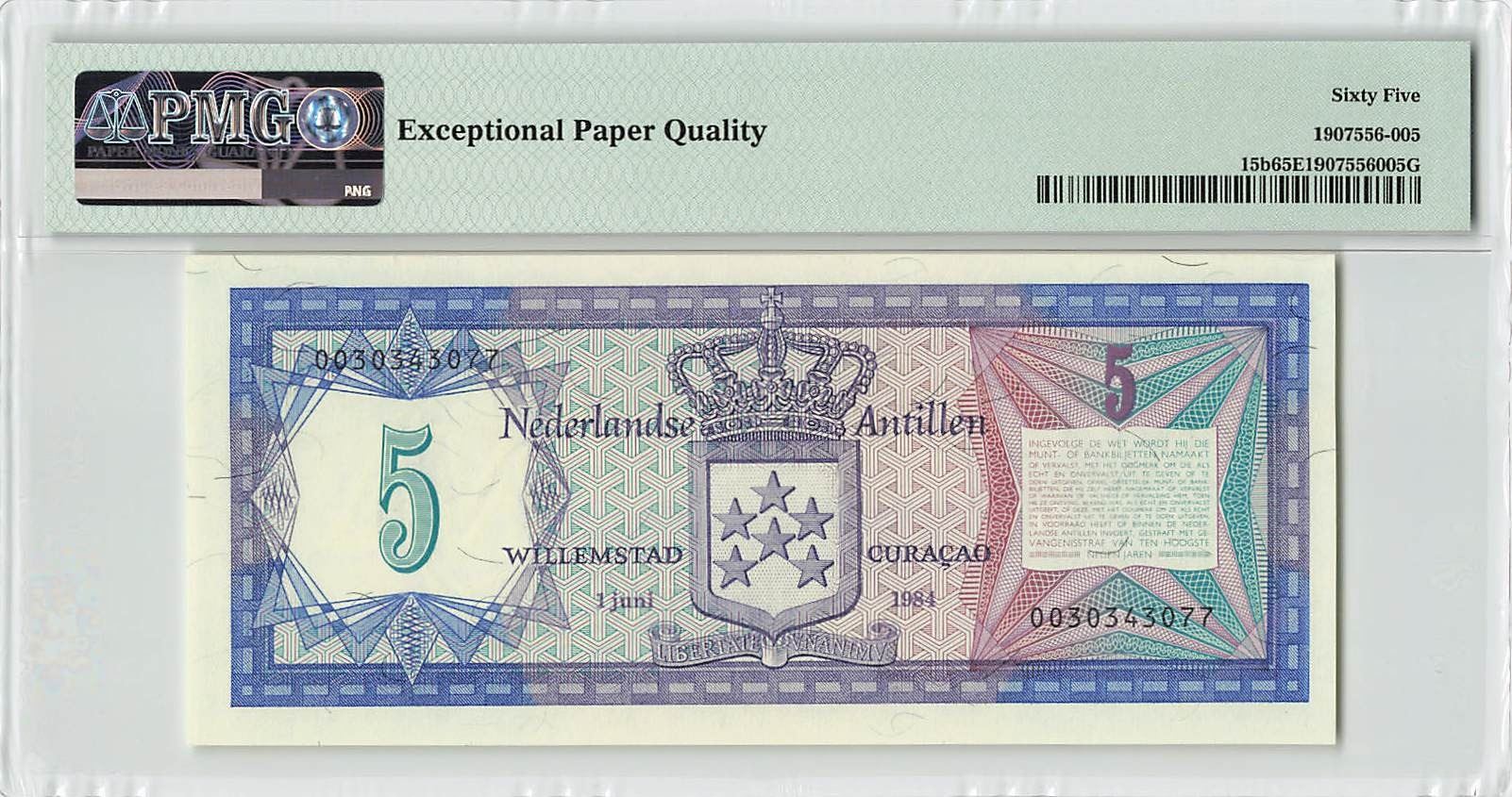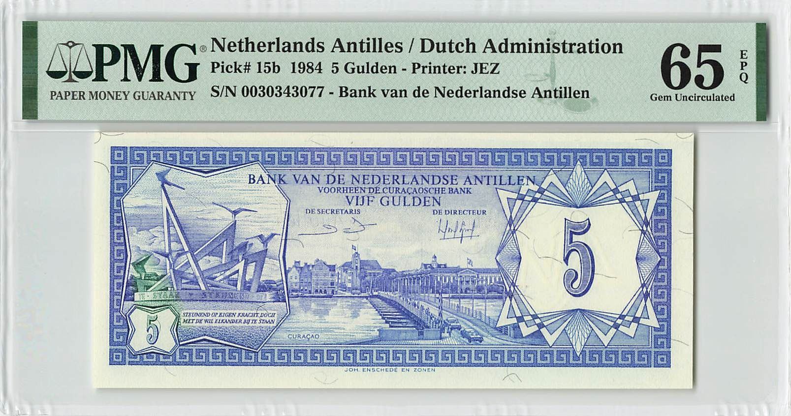 Netherlands Antilles 5 Gulden 1984 Pick 15b PMG Gem Uncirculated 65 EPQ