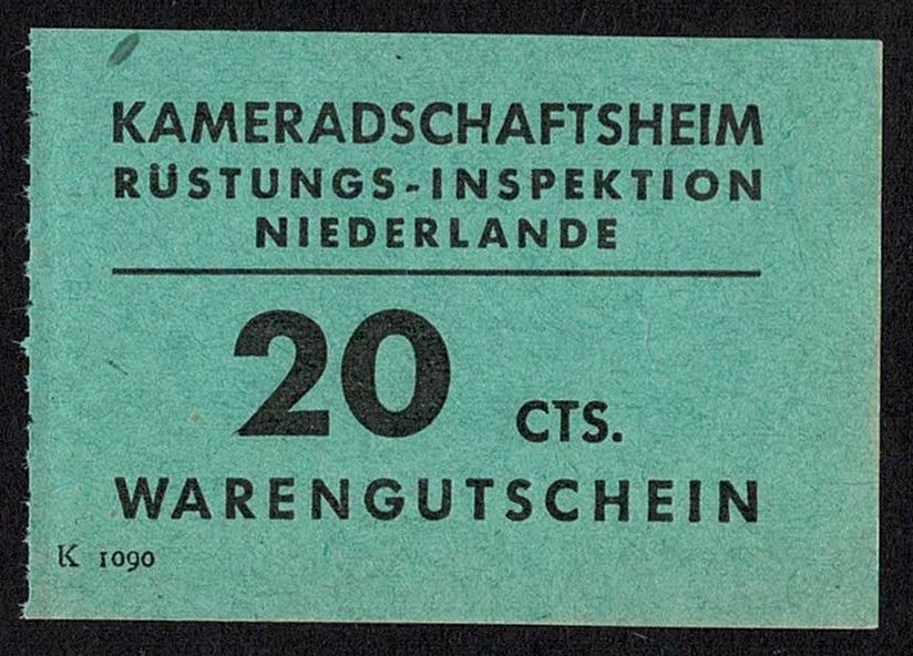 Netherlands Comradeship Armor Inspection 20 Cent Voucher Unlisted / Kameradschaftsheim Rüstungs-Inspection Niederlande 20 cent Warengutschein