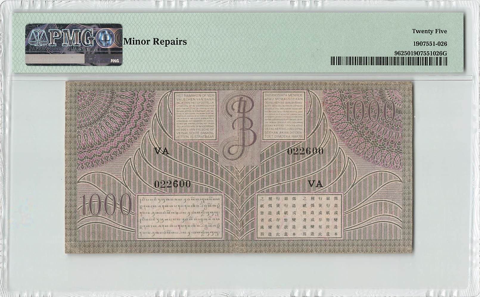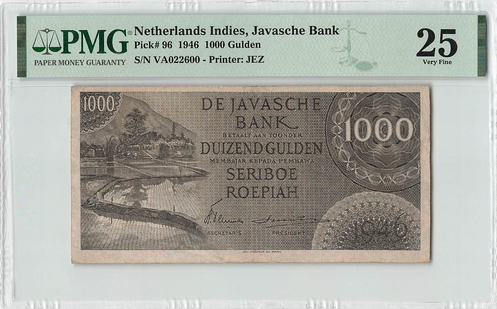 Netherlands Indies 1000 Gulden 1946 Javasche Bank Pick 96 PMG Very Fine 25