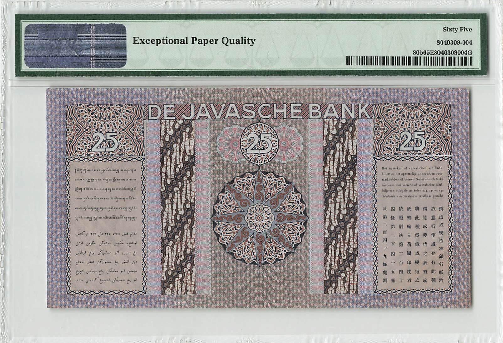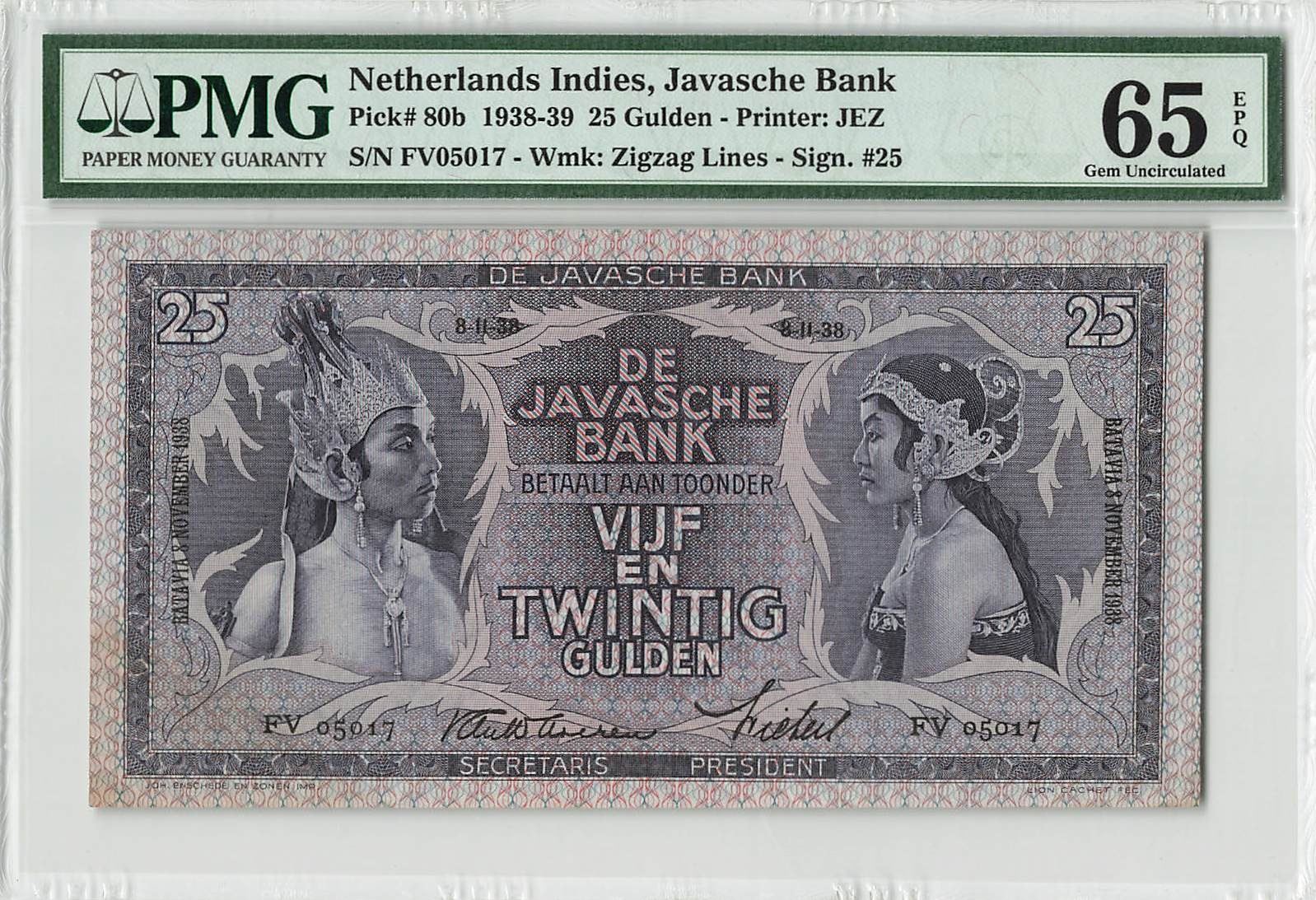 Netherlands Indies 25 Gulden 1938 Javanese Dancers Pick 80b PMG Gem UNC 65 EPQ