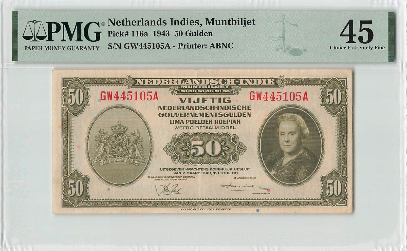 Netherlands Indies 50 Gulden 1943 ABNC Pick 116a PMG Choice Extremely Fine 45