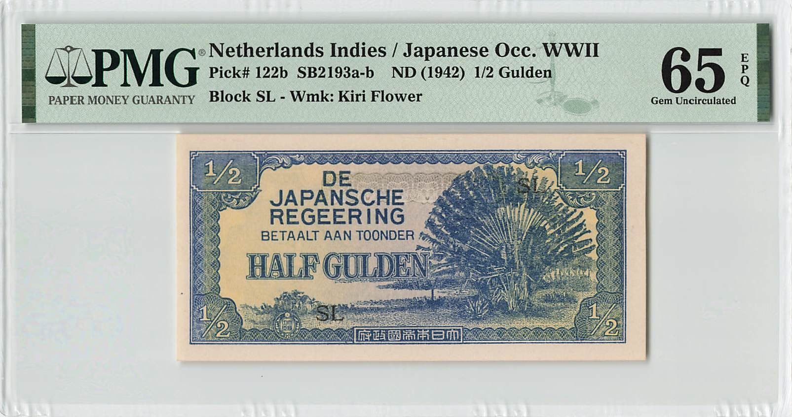 Netherlands Indies ½ Gulden 1942 Pick 122b PMG Gem UNC 65 EPQ