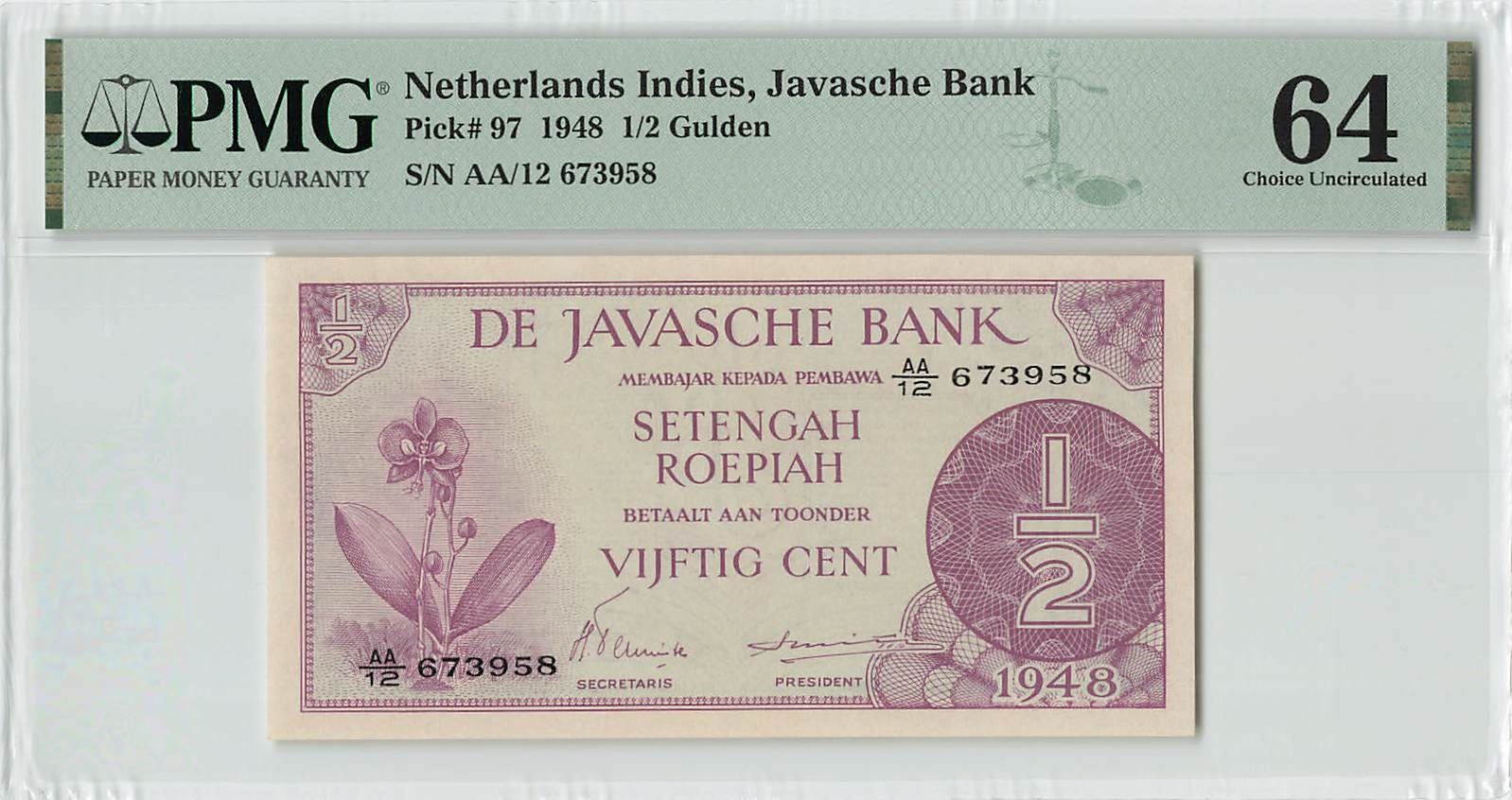 Netherlands Indies ½ Gulden 1948 Pick 97 PMG Choice UNC 64