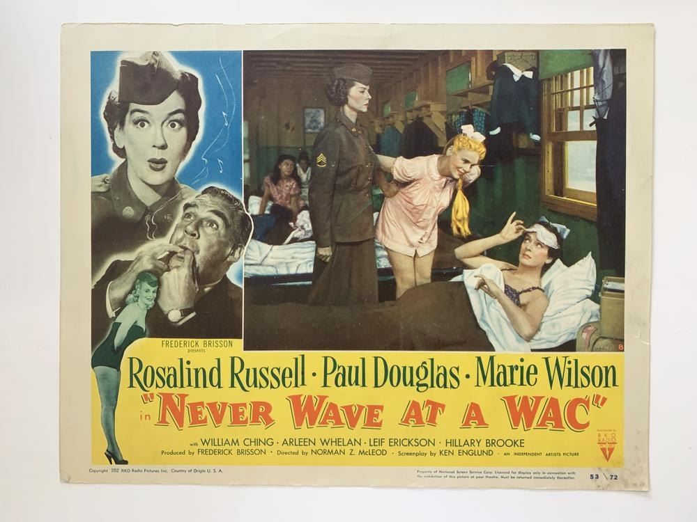 Never Wave at a Wac original 1953 vintage lobby card. 11x14 inches