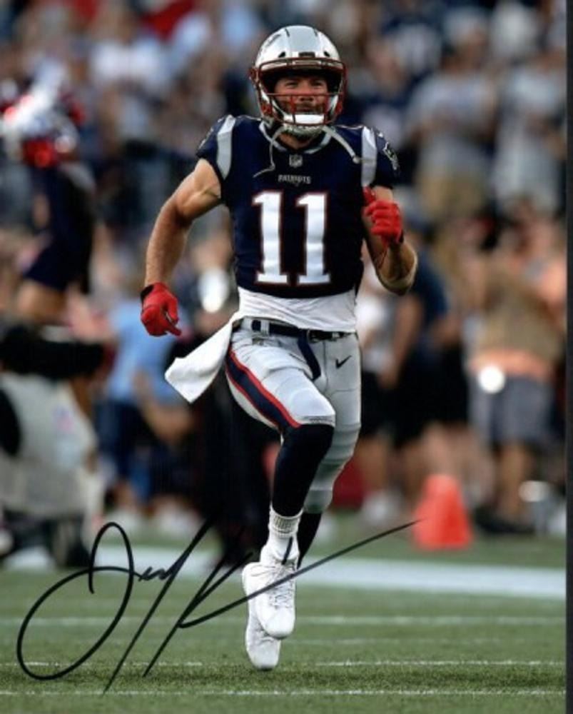 New England Patriots Julian Edelman facsimile signed photo. 8x10 inches. This item is a reprint of an original autograph