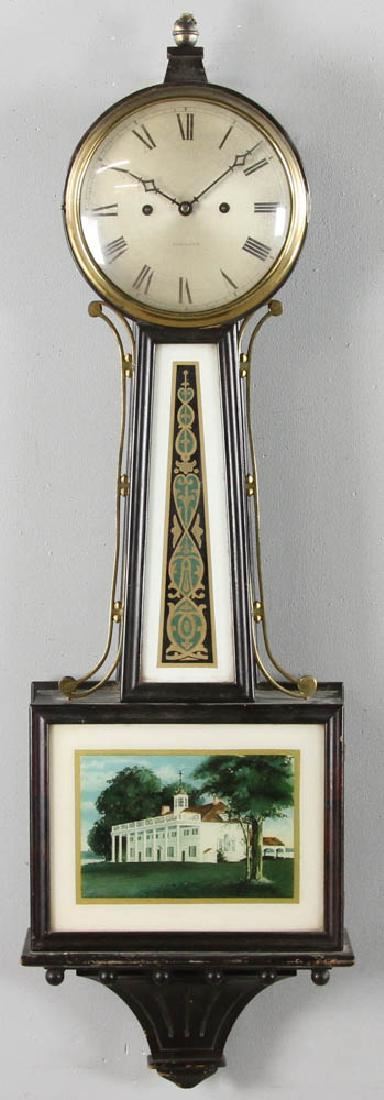 New Haven Clock Company, banjo clock, 40" x 12". Provenance: Beverly, Massachusetts estate.