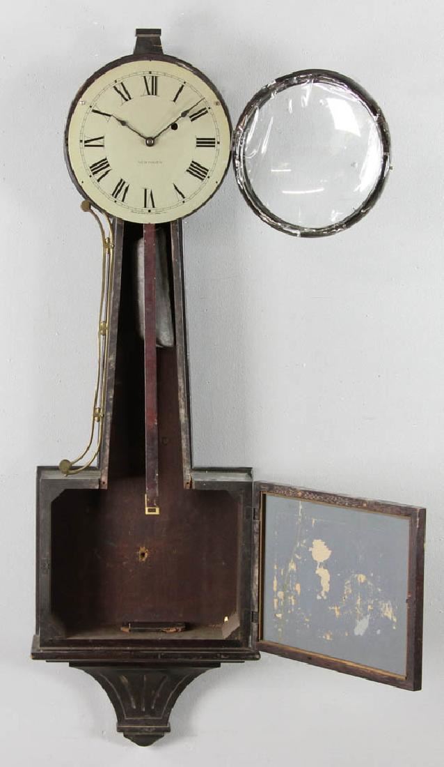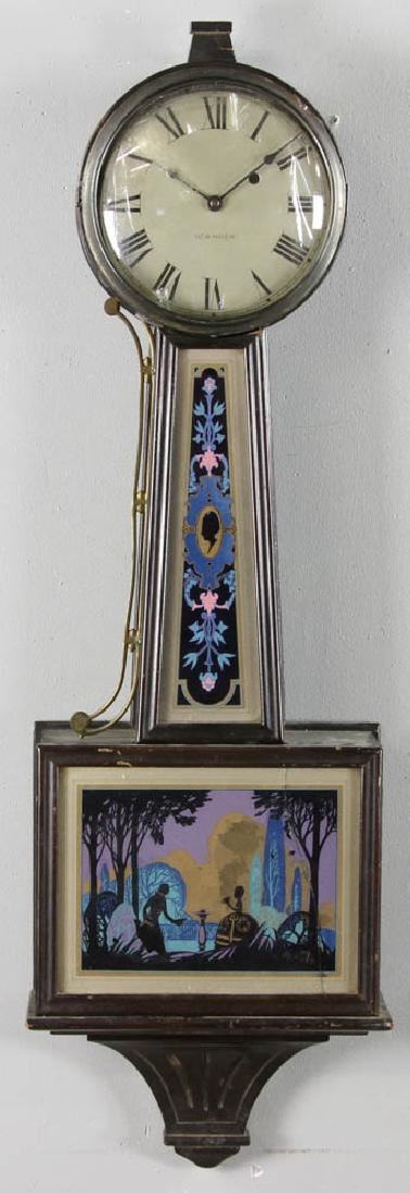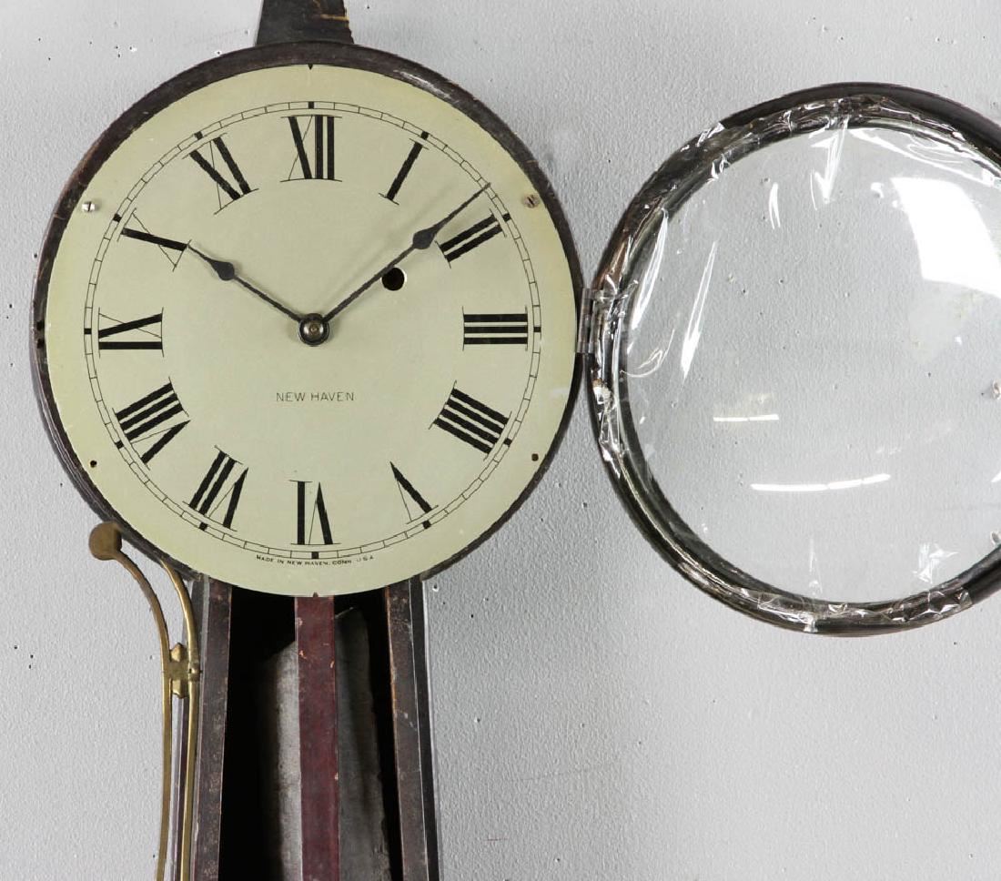 New Haven Clock Company, banjo clock, 39" x 12". Provenance: Beverly, Massachusetts estate.