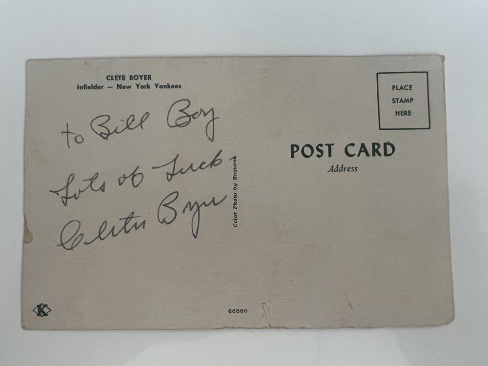 New York Yankees Clete Boyer signed postcard.3x5 inches