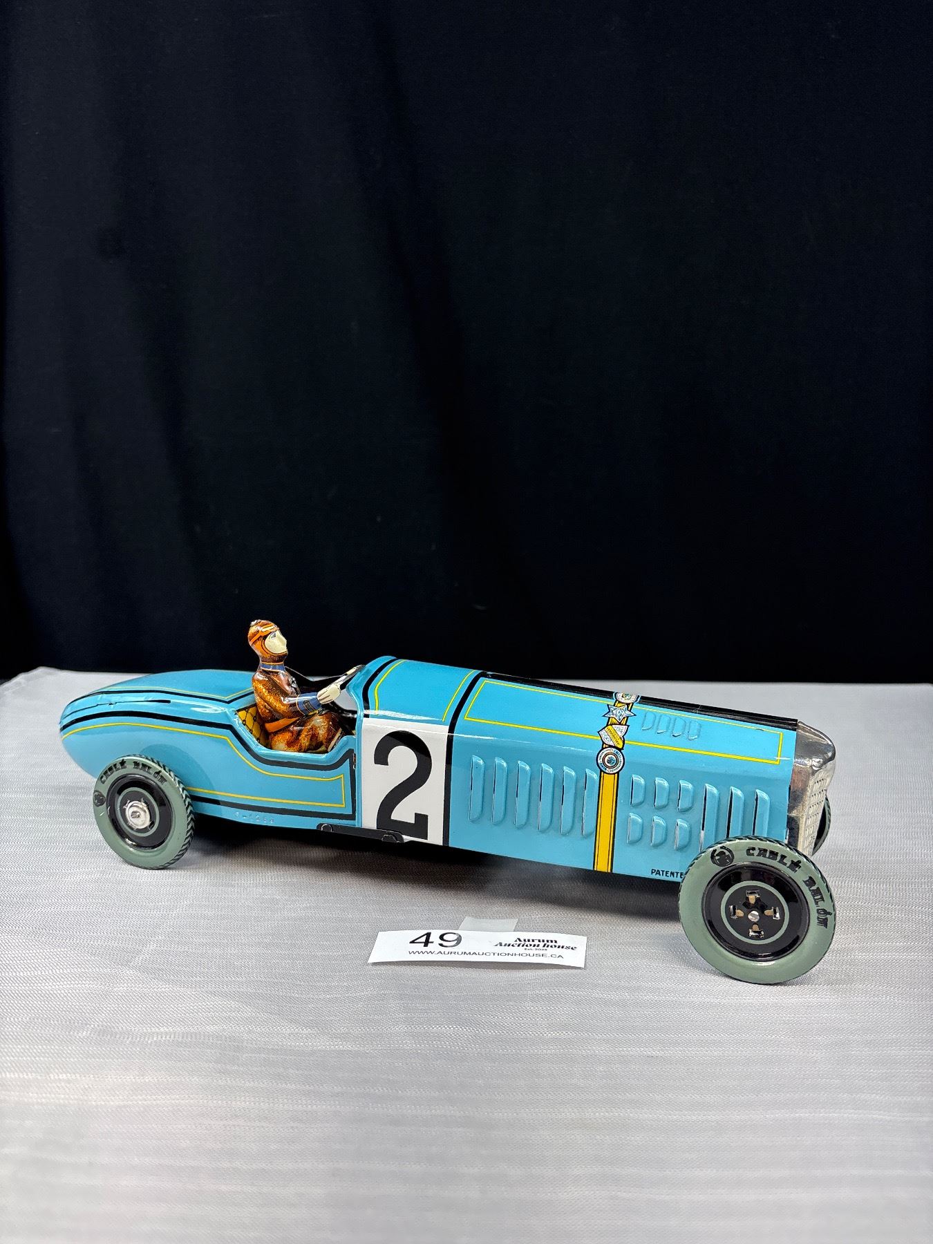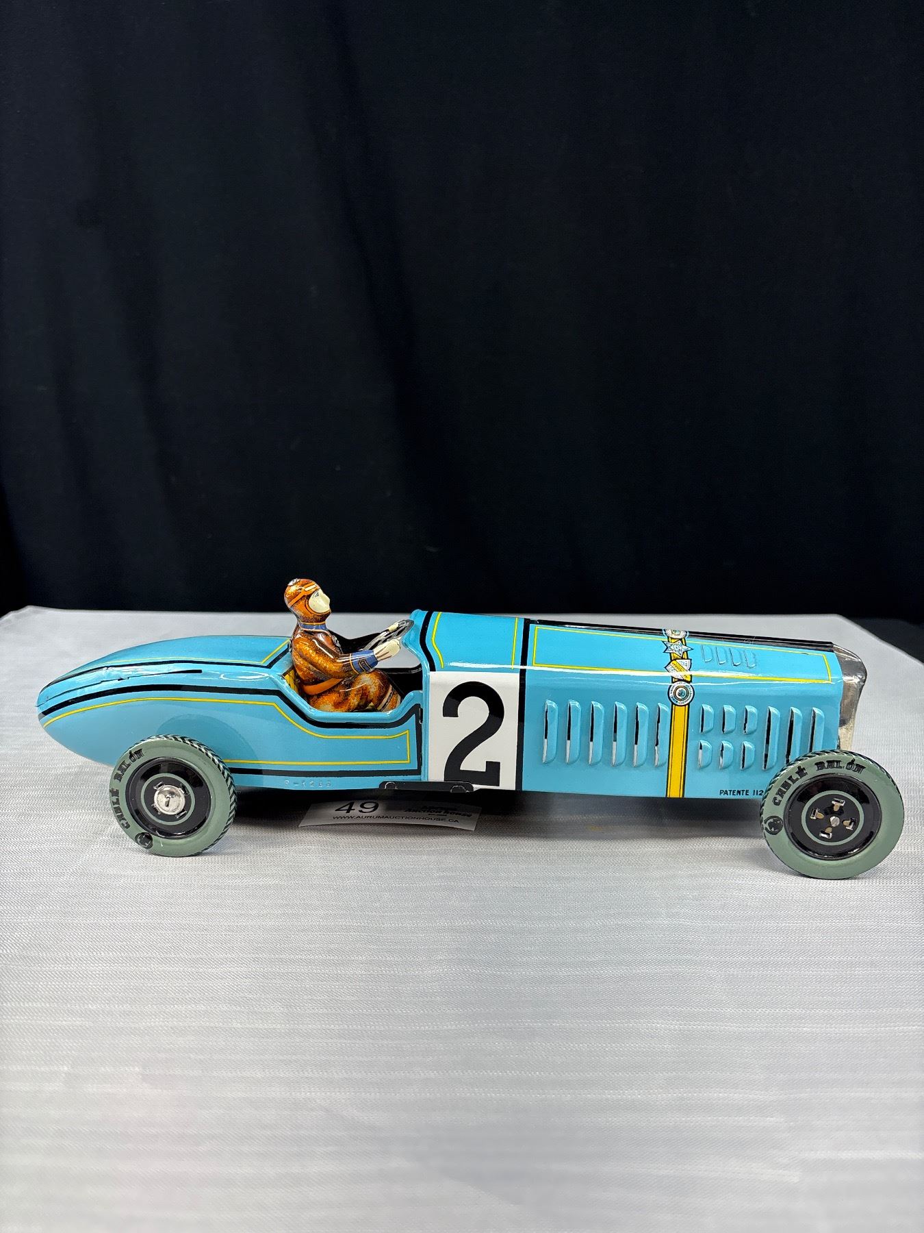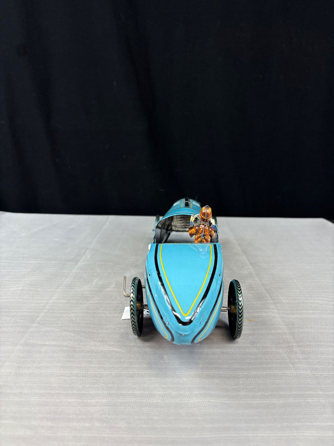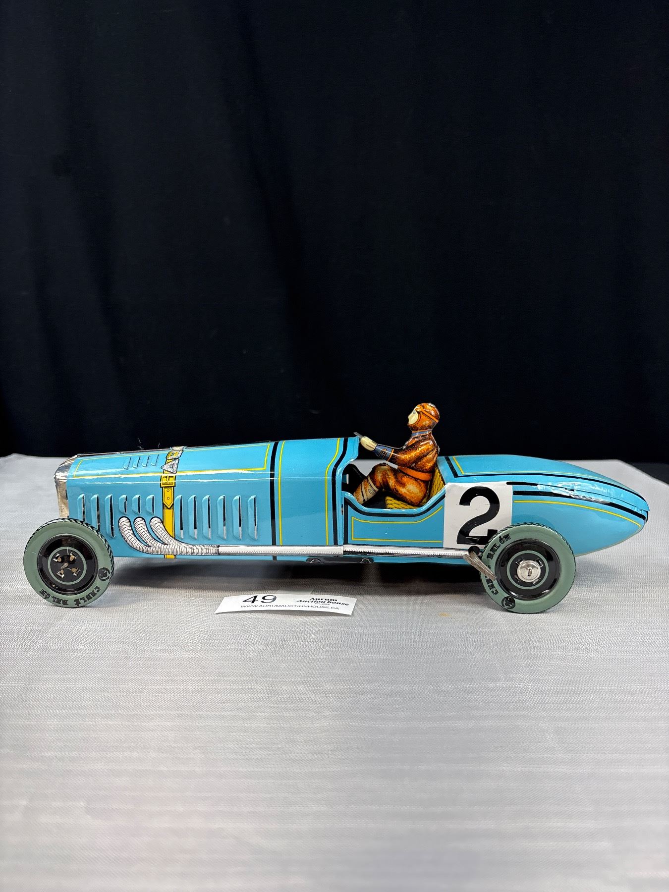 Newer Style 14" Wind Up Tin Racecar excellent Condition