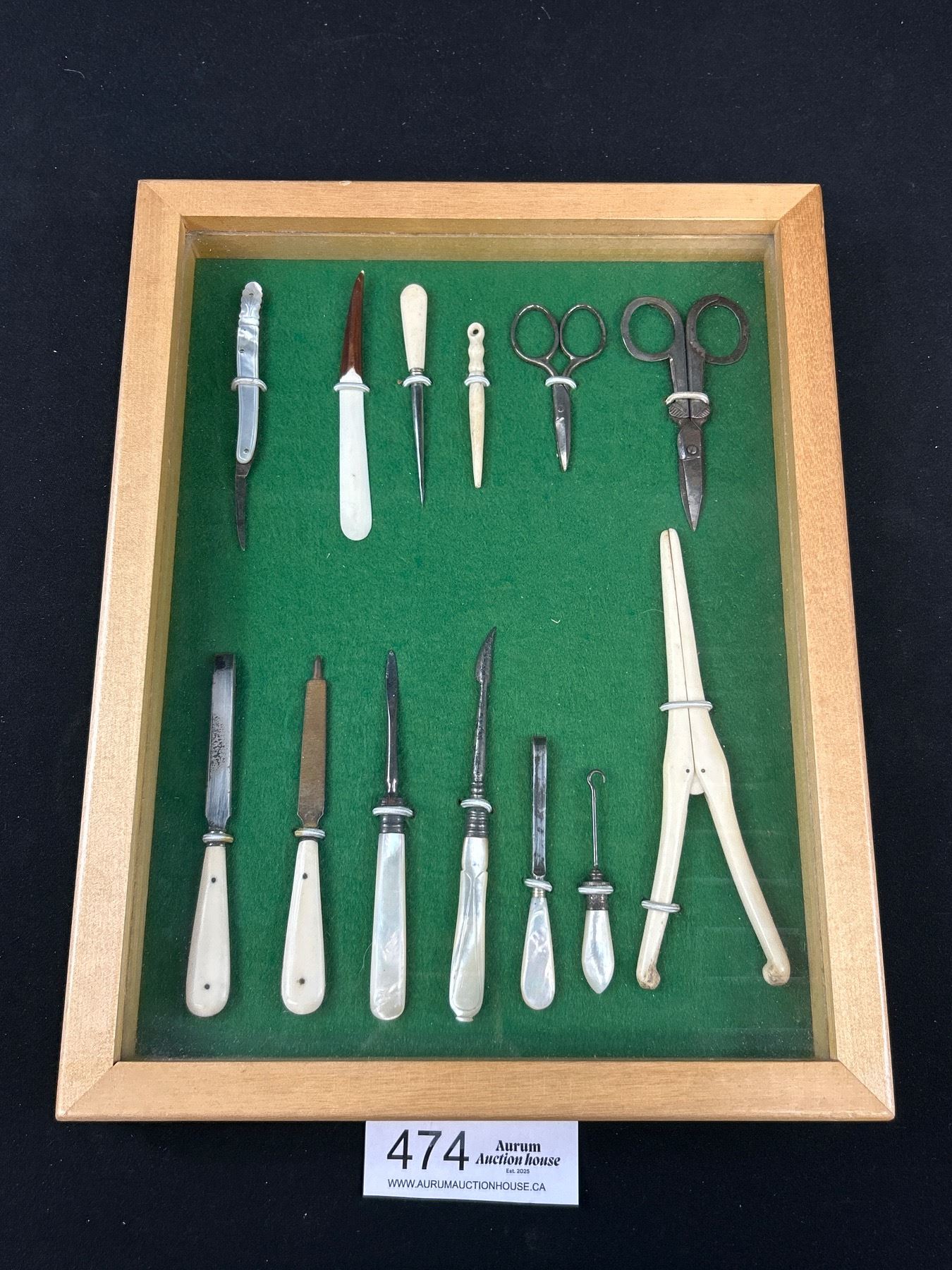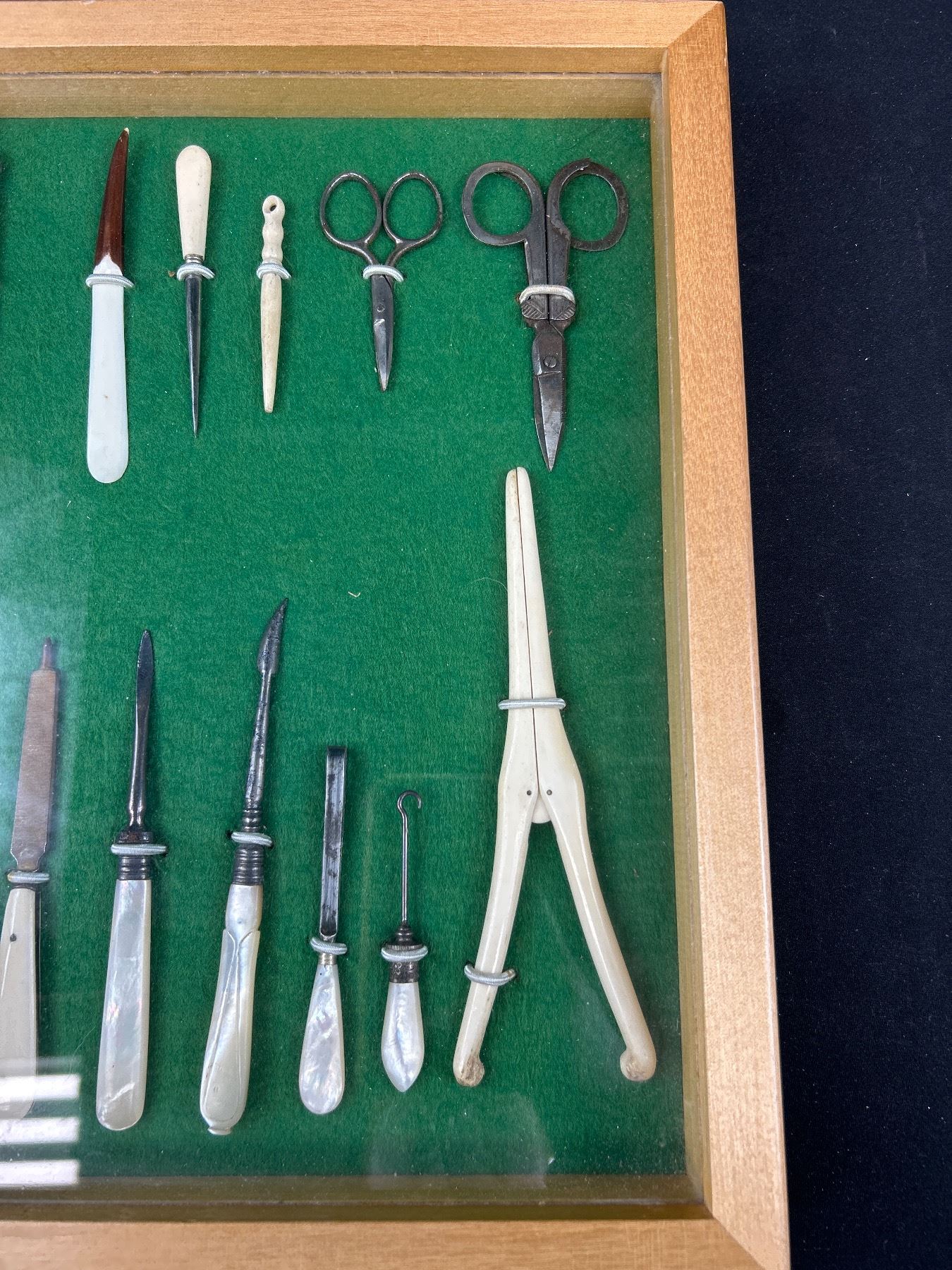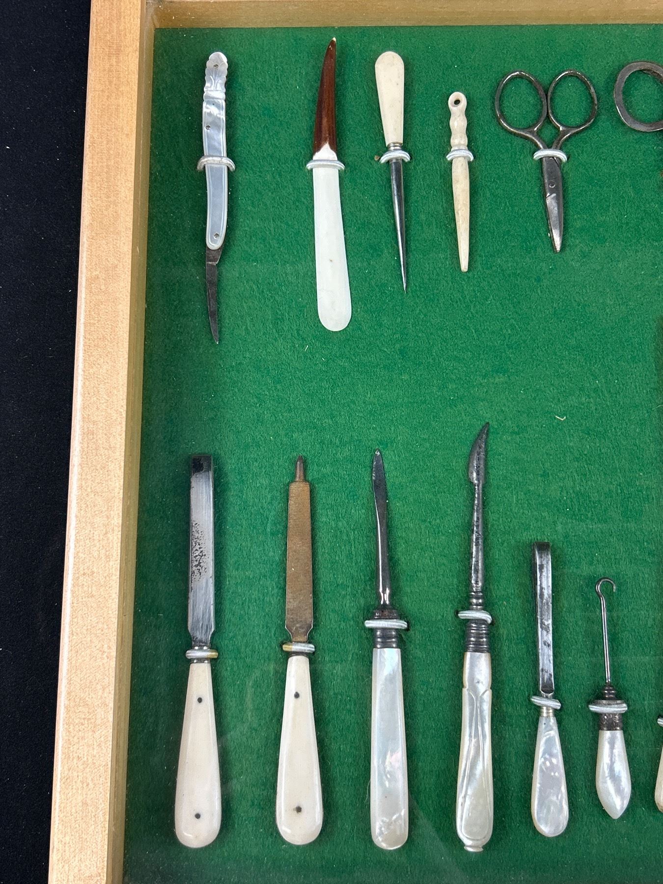 Nice Display Case of Mother of Pearl Nail Files, Etc