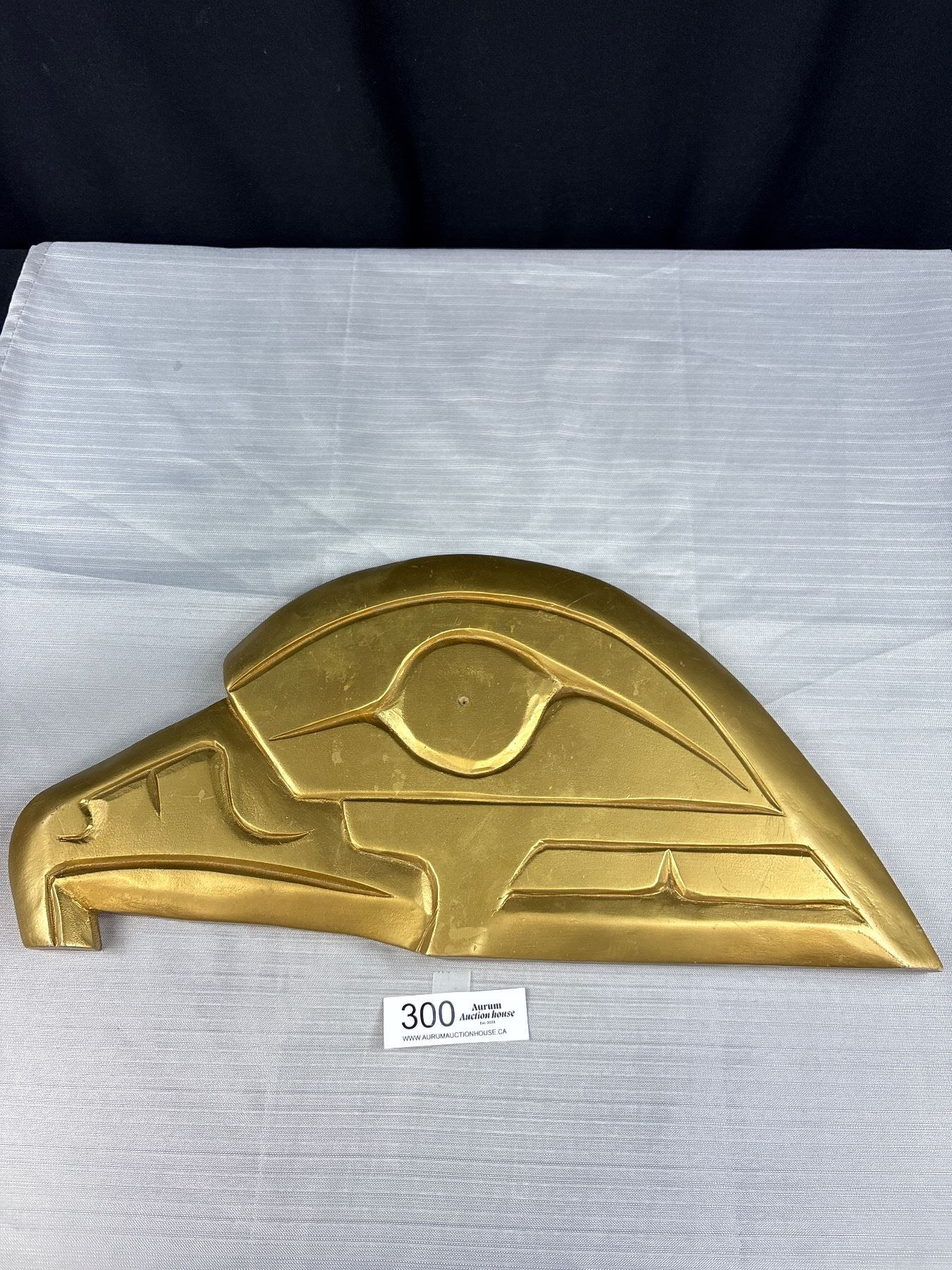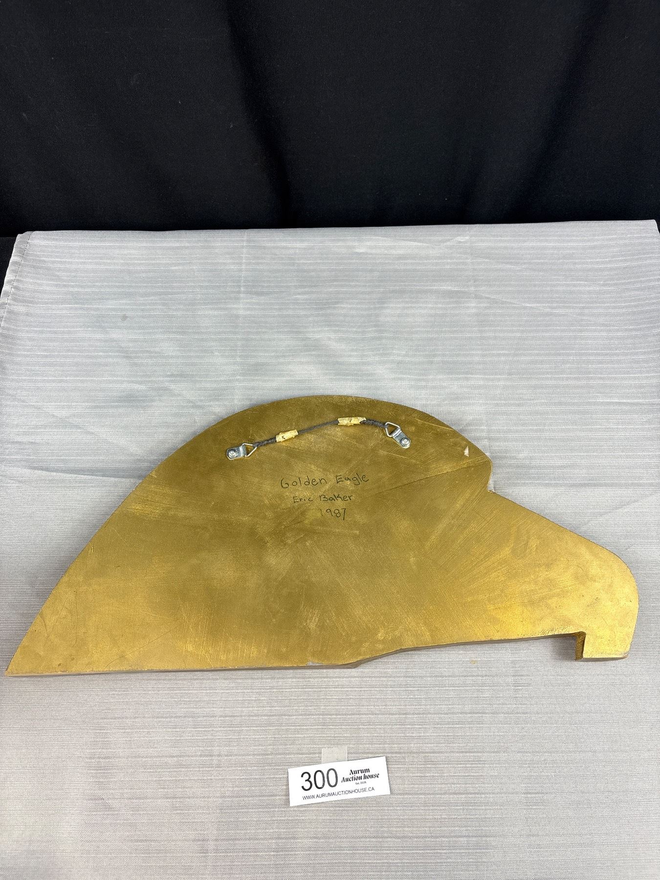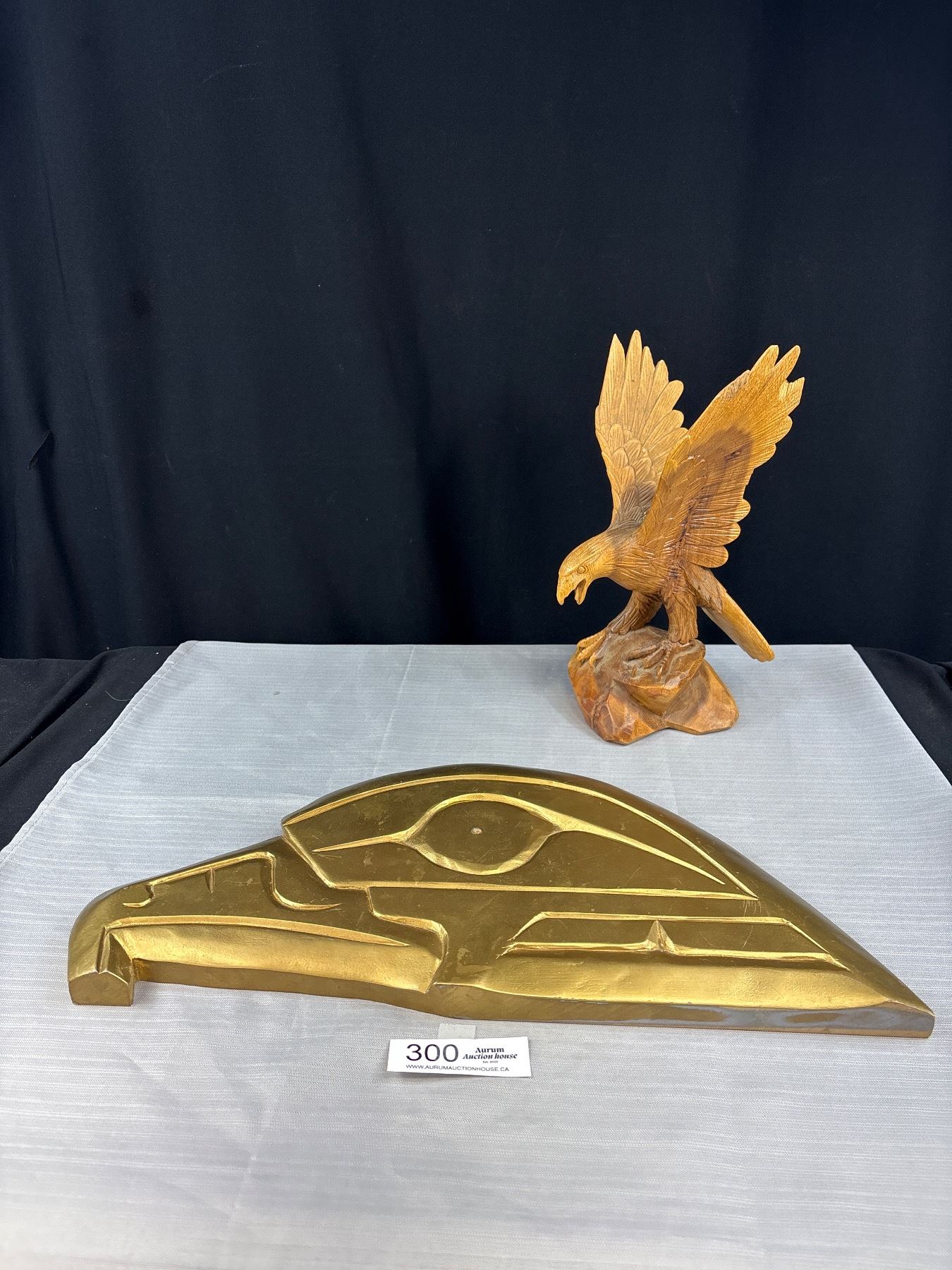 Nice Eagle Head Golden Plaque + Very Nice 18" Carved Eagle
